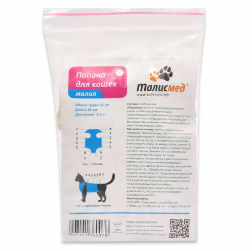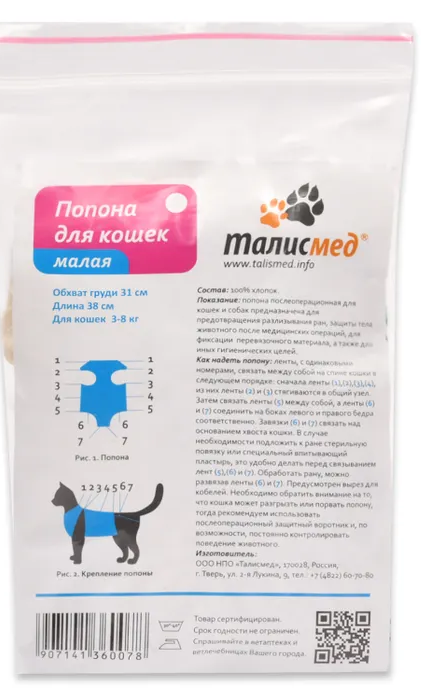 На сегодняшний день товар «Попона послеоперационная ТАЛИСМЕД для кошек малая, обхват груди 31см (размер: m)» можно купить с кешбеком в 1 магазине: Яндекс.Маркет