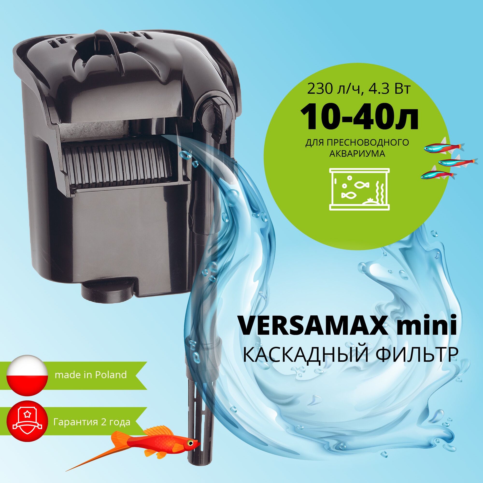 Фильтр для аквариума навесной (рюкзачный) Aquael VERSAMAX mini - это надежное и эффективное решение для обеспечения качественной фильтрации воды в вашем аквариуме. Благодаря его уникальным характеристикам, вы сможете создать оптимальную жизненную среду для рыбок и других живых существ.