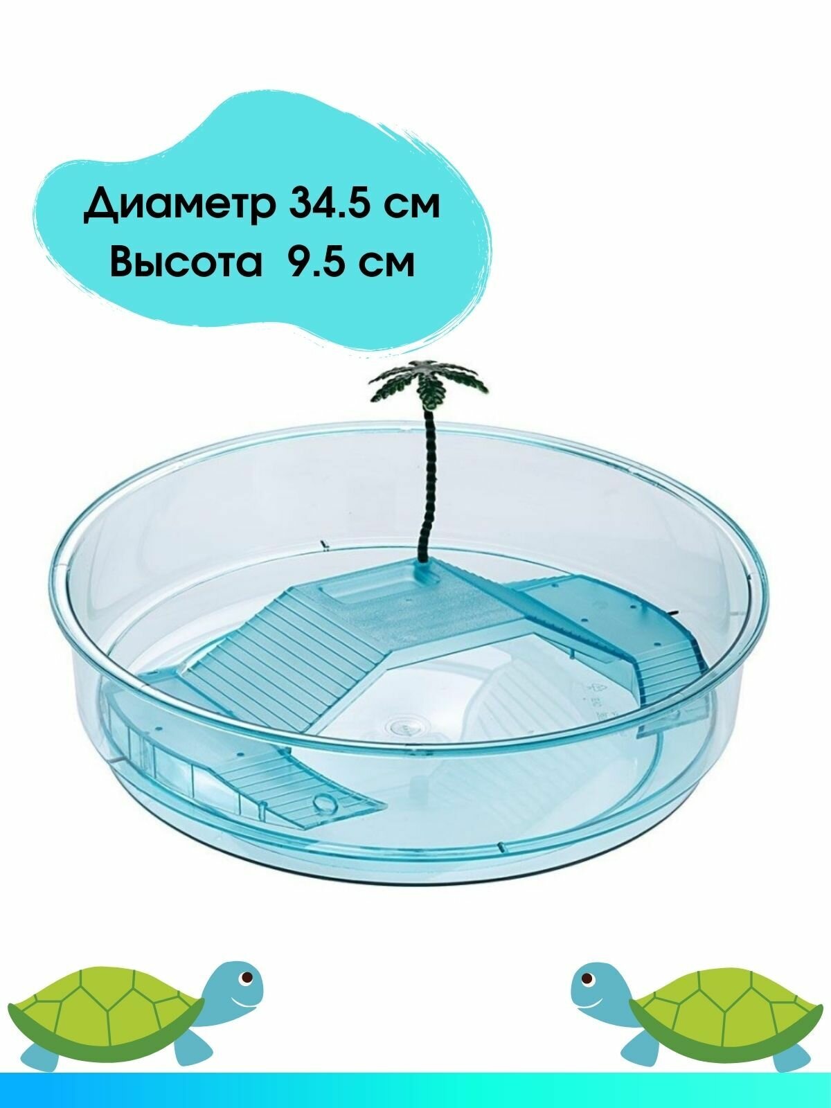 Oasi - круглая чаша для черепах из прозрачного пластика, в комплекте с декоративным островком и пальмой. Диаметр чаши 30 см, она подходит для комфортного размещения мелких рептилий; идеальна для размещения на небольшой площади. Пластиковый декоративный островок с легкостью можно убрать на время уборки.