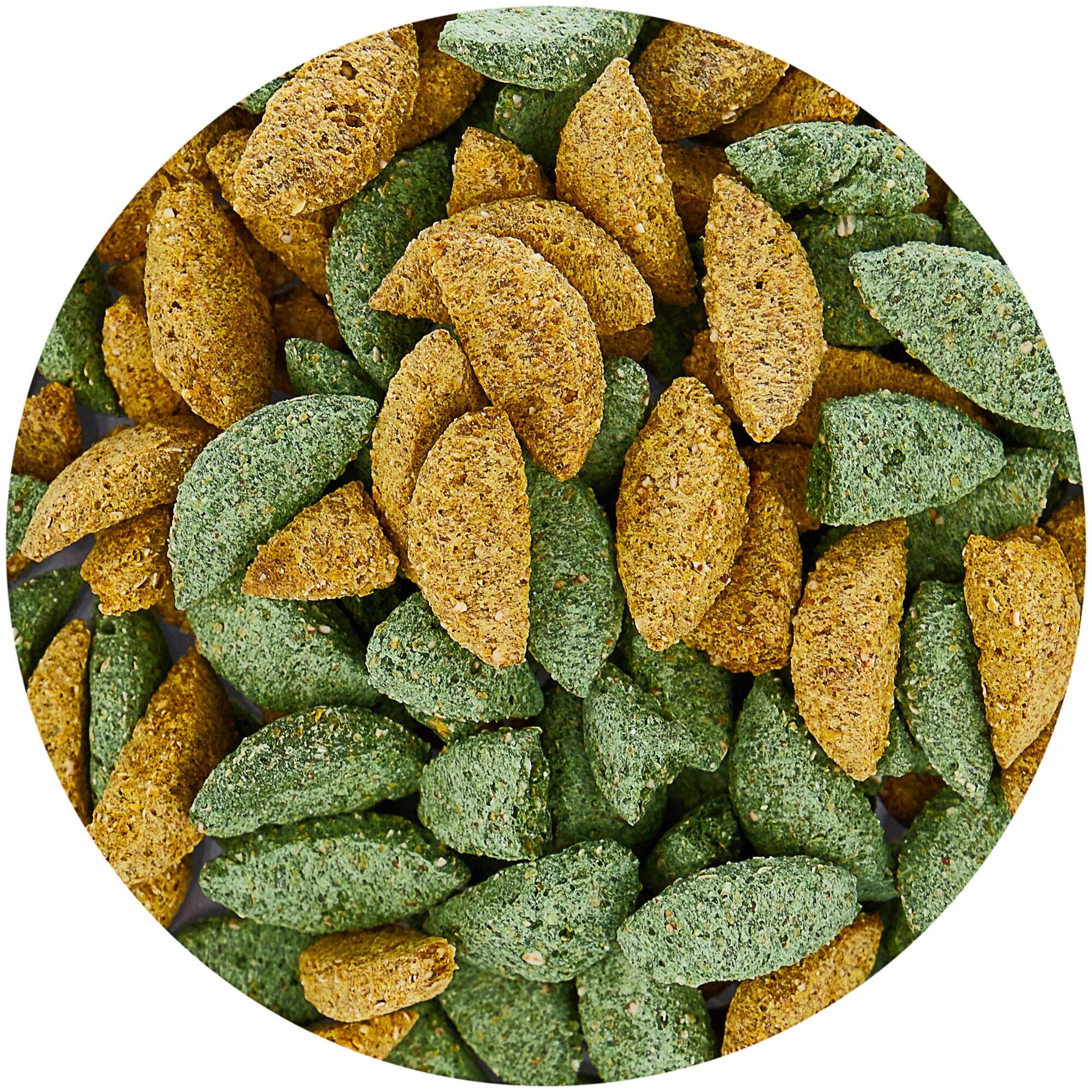 Описание Полноценный экструдированный корм для шиншилл CARE+ имеет высокое содержание сырой клетчатки 20% и низкое содержание жира. Каждая гранула имеет одинаковый состав (все-в-одном), что важно для сбалансированного питания и предотвращения выборочного поедания без остатка. Специальные твердые гранулы обеспечивают естественное стачивание зубов (Dental Care). CARE+ содержит: ? экстракт зеленого чая для стимуляции и поддержки иммунной системы ? эхинацею ? спирулину ? витамин Е ? Юкка Шидигеру ? минералы в хелатной форме для лучшего усвоения и доступности ? FOS (фруктоолигосахариды) и MOS (маннанолигосахариды) для поддержания здоровой кишечной флоры ? жирные кислоты Омега-3/6. Одной 5-килограммовой упаковки хватает на 250 дней*. *Эти данные являются ориентировочными и могут варьироваться в зависимости от веса, физической формы и уровня активности. Производитель: BEAPHAR B.V. (Беафар Б. В.), Европейский союз, Нидерланды. Вес брутто (грамм): 5200 Длина (мм): 370 Ширина (мм): 98 Высота (мм): 376 Состав Продукты растительного происхождения (Юкка Шидигера 0,1%, эхинацея 0,03%, экстракт зеленого чая 0,01%, FOS 0,01%), злаки, овощи, минералы, семена, дрожжи (MOS 0,1%), водоросли (спирулина 0,01%). Анализ: протеин 20%, клетчатка 20%, масла и жиры 2,8%, зола 5%, кальций (Ca) 0,75%, фосфор (P) 0,55%, натрий (Na) 0,19%, магний (Mg) 0,16%, калий (K) 0,82%, сера (S) 0,03%, омега-3 0,07%, омега-6 0,69%. Энергетическая ценность: 2500 ккал/кг. Добавки на 1 кг: витамин A 20 600 ME, витамин B1 14 мг, витамин B2 19 мг, витамин B6 17 мг, витамин B12 56 мкг, витамин C 14 мг, витамин D3 1750 ME, витамин E 60 ME, витамин K3 2,5 мг, биотин 480 мкг, холин хлорид 1000 мг, кальция D-пантотенат 40 мг, никотинамид 96 мг, медь (Cu) (аминокислотный хелат меди) 16 мг, йод (I) (3b201, 3b202) 2,14 мг, марганец (Mn) (аминокислотный хелат марганца) 40 мг, селен (Se) (селенит натрия) 0,08 мг, цинк (Zn) (3b606) 80 мг, DL-метионин 1000 мг, фолиевая кислота 2,6 мг, красители, ароматизаторы (тимьян) 120 мг. Дозировка В зависимости от размера и уровня активности одной шиншилле требуется 2030 г корма в день. Способ применения Большинство шиншилл с готовностью принимают корм. Однако если вы переходите с другого корма, важно сделать это постепенно. Первые несколько дней смешивайте старый корм с CARE+. Шиншиллы ценят регулярность в кормлении, поэтому старайтесь кормить их в одно и то же время каждый день. Всегда должен быть доступ к чистой питьевой воде и свежему сену.
