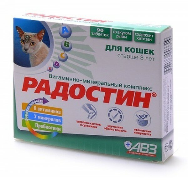 Витамины АВЗ Радостин для кошек старше 8 лет 90таб (размер: 0.105)