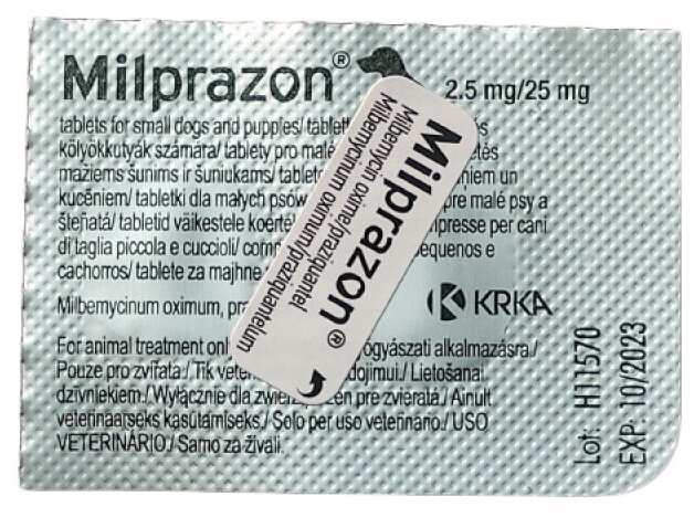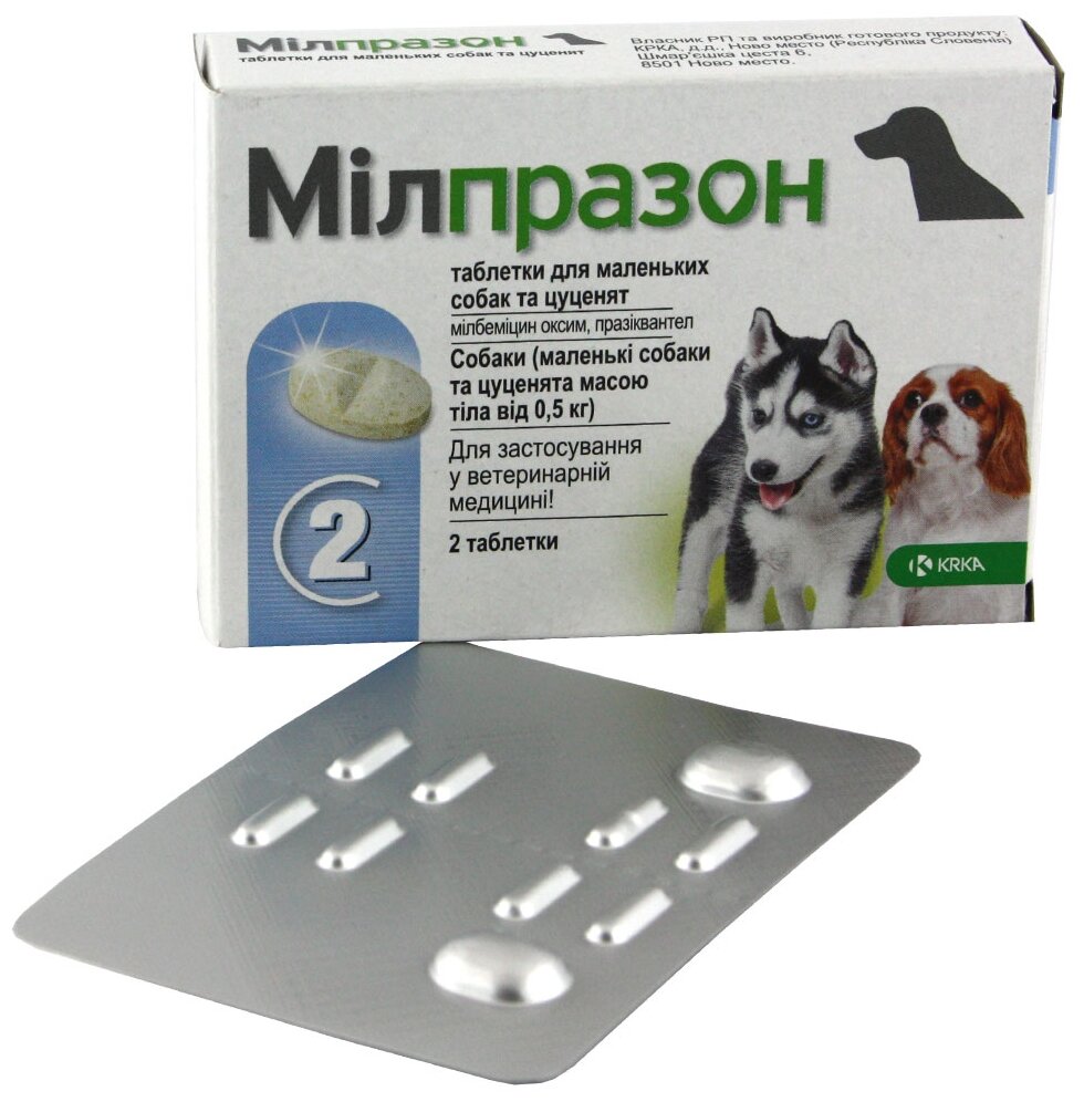 Антигельминтик для щенков и собак KRKA Милпразон, 2 таблетки