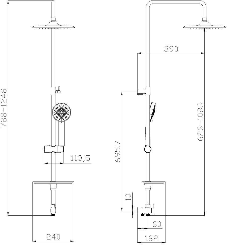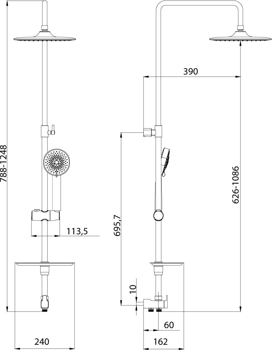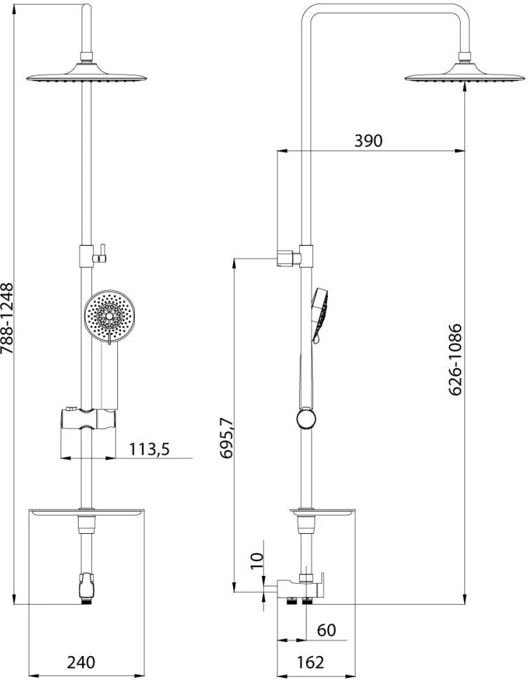 | ВКоробке | Душевая стойка - 1 шт. Лейка - 1 шт. Шланг - 1 шт. Верхний душ - 1 шт. Мыльница - 1 шт. Держатель для душа - 1 шт. Инструкция - 1 шт. |