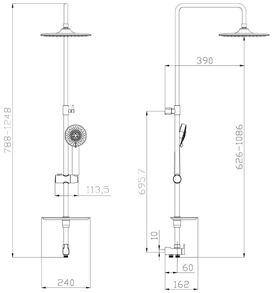 | Комплект поставки | верхний душ, душевая стойка, душевая лейка, настенное крепление, шланг для душа 1,5 м, мыльница |