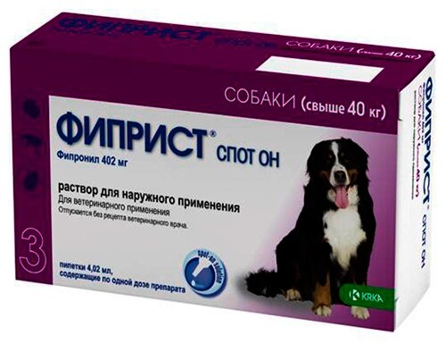 Сервис сравнения цен СкидкаГИД предлагает сравнить цены на товар «Капли для собак KRKA Фиприст Спот Он от блох и клещей, весом свыше 40кг 402мг, 3 пипетки»