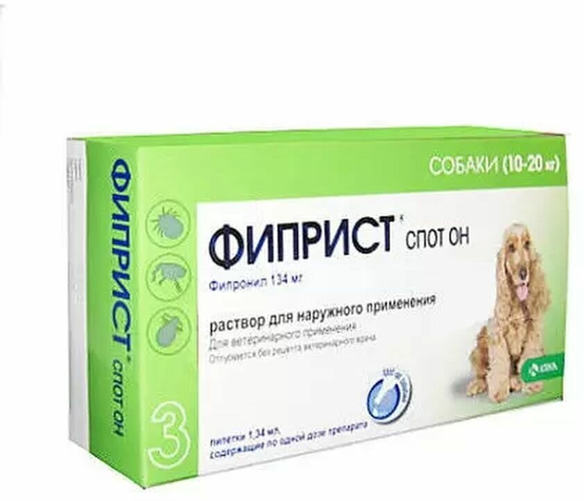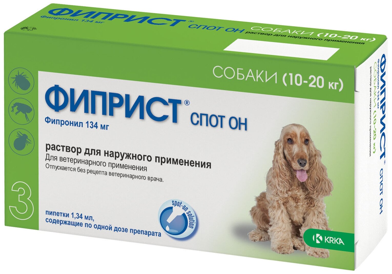 Капли для собак KRKA Фиприст Спот Он от блох и клещей, весом 10-20килограмм 134мг, 3 пипетки