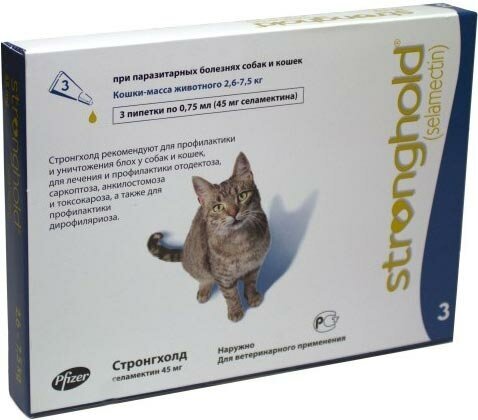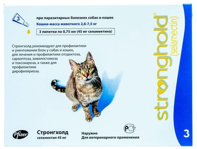 Капли для кошек Zoetis Stronghold 2,6-7,5кг 45мг, 3 пипетки