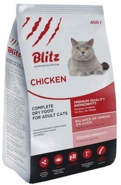 Корм для кошек Blitz adult cat chicken с мясом курицы сух. 10кг
