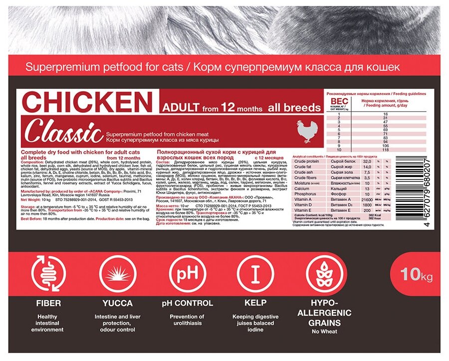 | Ширина, м | adult cat chicken с мясом курицы сух. 10кг |