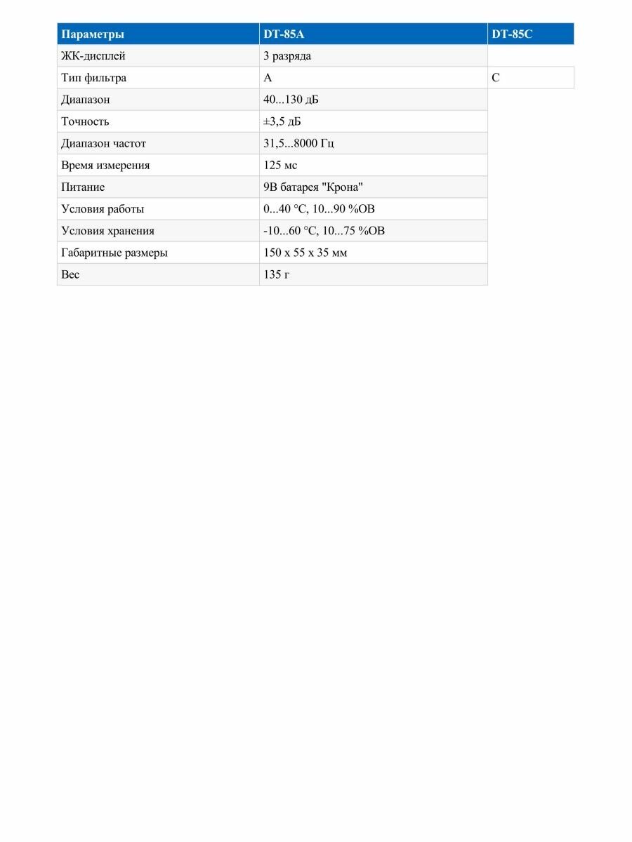 | Диапазон измеряемых значений уровня звука | 40-130 |