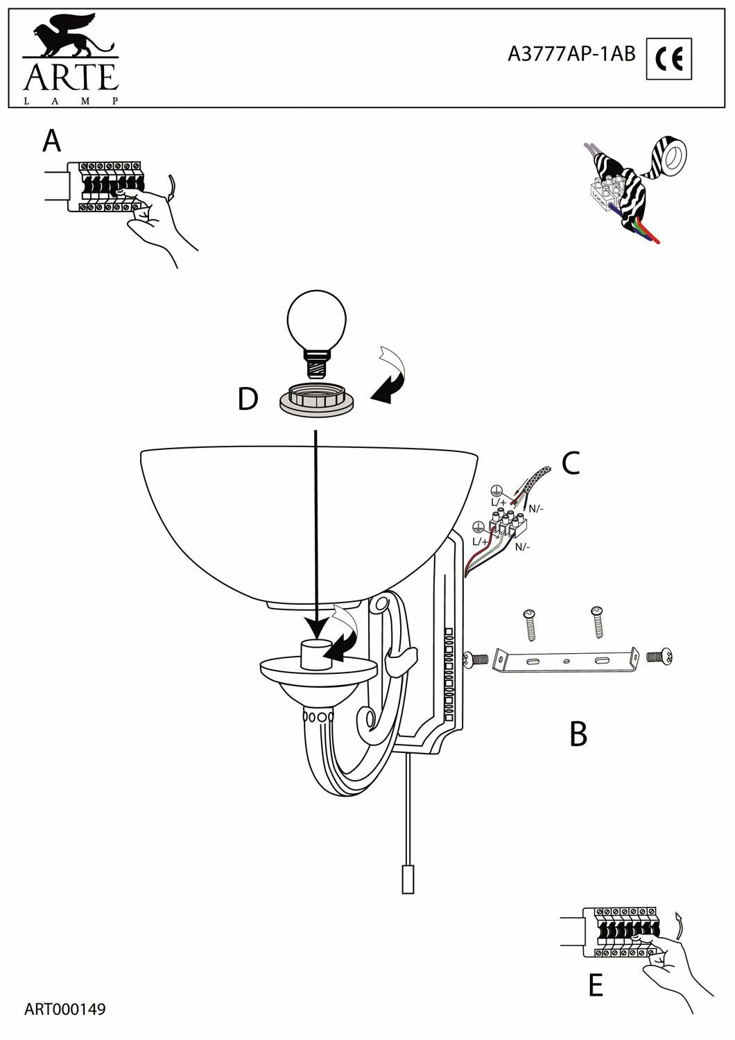 Настенный светильник ARTE LAMP Windsor a3777ap-1ab