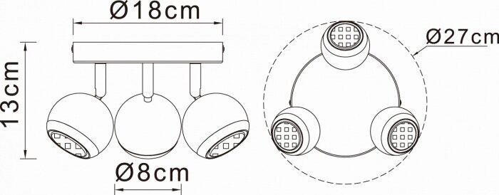 | Вид товара | Споты с 3 лампами |