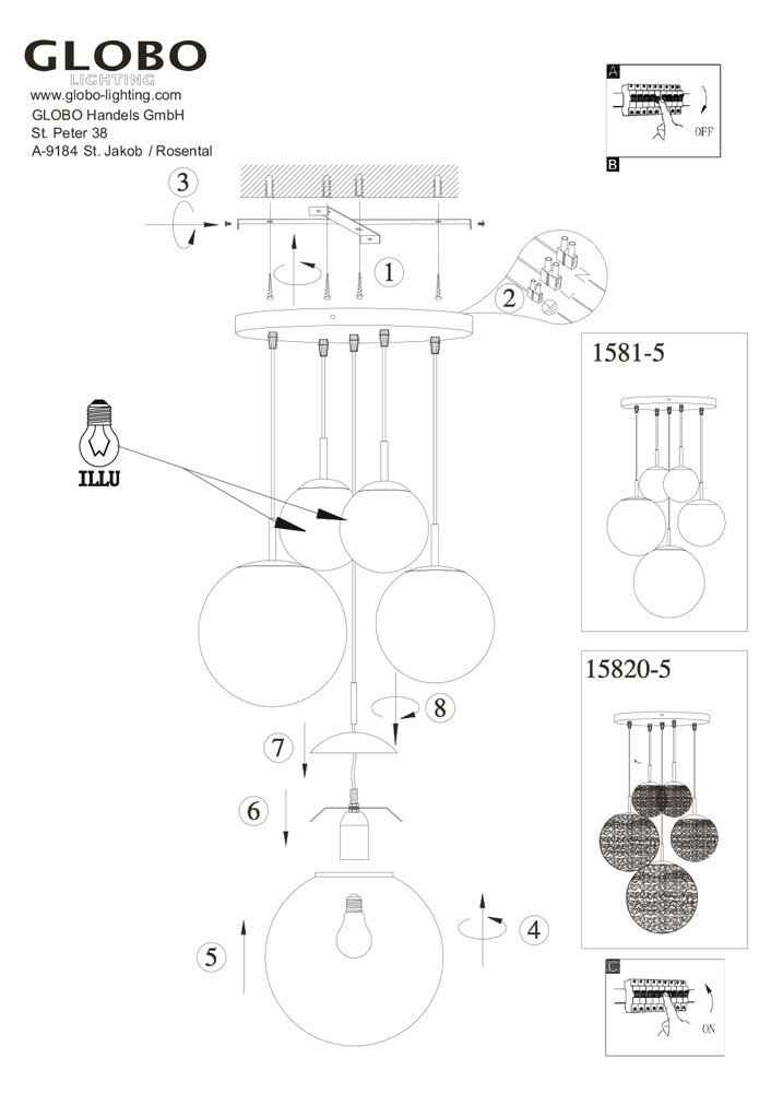 Особенная модель 1581 от австрийской компании Globo относится к коллекции Balla и отлично подойдет для установки на потолок кухни, оформленной в современном стиле. Подвесной светильник Globo Balla 1581 с круглыми плафонами осветит помещение площадью 3.3 кв. м. Производитель Globo рекомендует использовать для устройства лампы накаливания с цоколем E27 и мощностью 60 W. Прибор произведен с использованием материалов: стекло и металл и может использоваться для натяжного потолка.