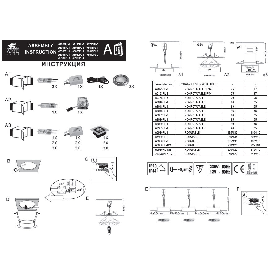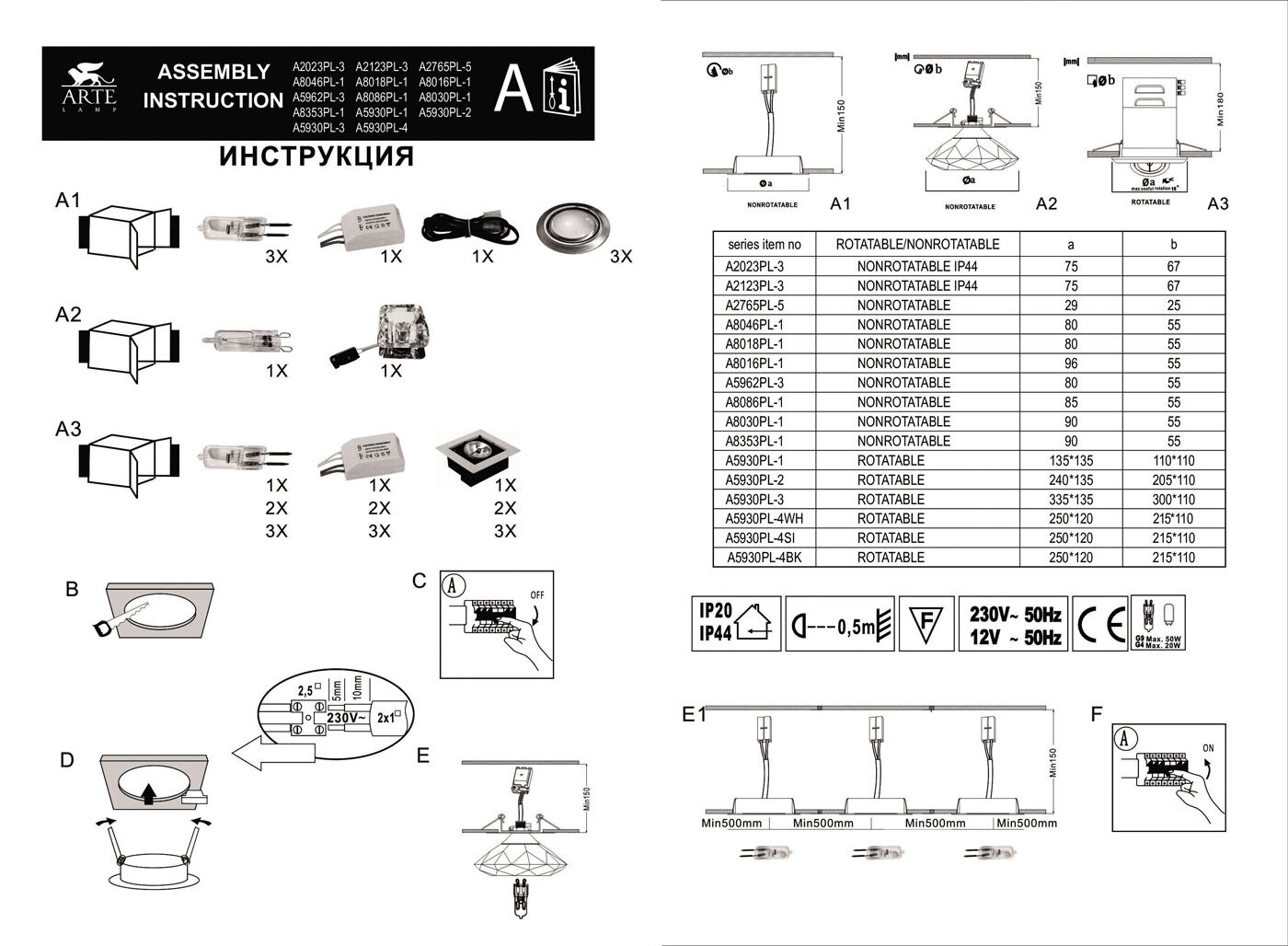 - Монтаж светильника ARTELAMP A5930PL-3SI