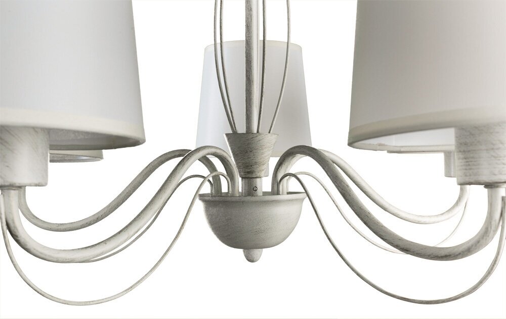 Люстра Artelamp A9310LM-5WG серии Orlean. Подчеркнет стиль помещения. Размеры 66x66x40 cm. Параметры пылевлагозащиты IP — 20. Форма изогнутая. Плафон текстильный белого цвета, а материал/цвет арматуры металл/белый. Использует 5 ламп с цоколем E27. Площадь освещения охватывает 11.25 m². Идеально подходит для гостиной. Страна происхождения бренда — Италия. Вес с упаковкой 3.9 kg