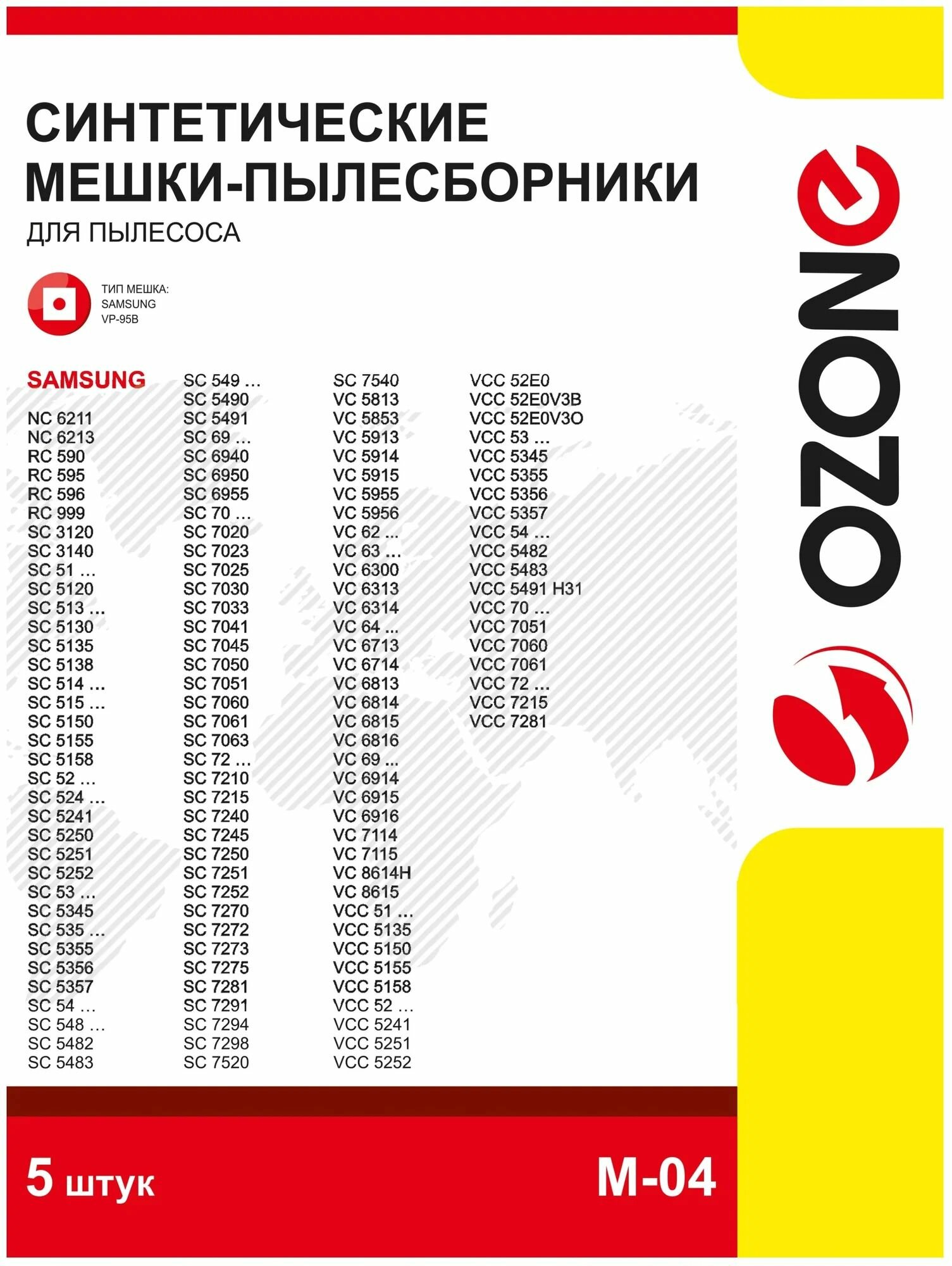 Оригинальные синтетические пылесборники Samsung VP-95 OZONE M-04