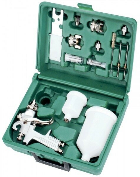 Покрасочный пистолет конвенционального типа и гравитационной подачей ЛКМ применяется для производства малярных работ со всеми типами лакокрасочных материалов*. Изделие доступно к приобретению в виде набора.