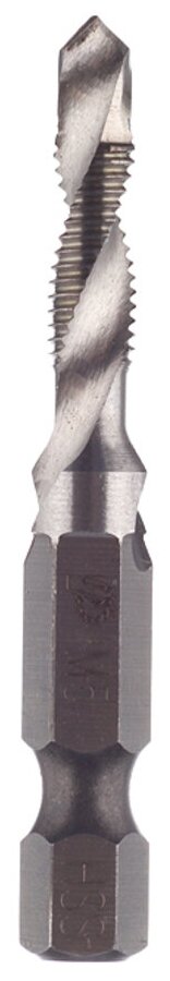 Комбинированное сверло метчик от известного российского производителя «Практика» М5 применяется для резьбы по металлическим поверхностям при проведении ремонтных и строительных работ. Для этого используется дрель. Изделие длиной 54 миллиметра, шаг 0,8. Оно изготовлено из высококачественной стали марки Р6М5, шлифованное, с правосторонней резьбой. Оно оснащено шестигранным концевиком на 1/4 дюйма, поэтому отлично взаимодействует с современным инструментом. Работа происходит за один подход, так как нарезка резьбы и сверление происходит сразу, а очищается оно самостоятельно на обратном ходу. В блистере находится 1 сверло.