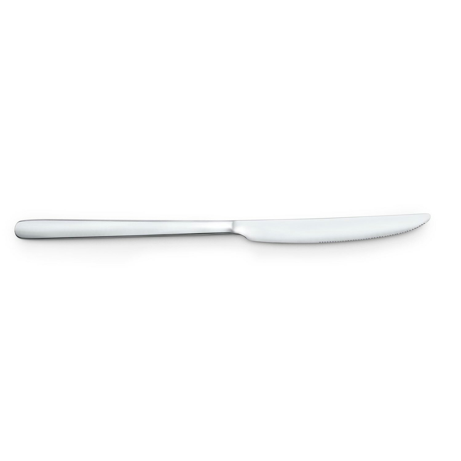 Столовые ножи Apollo Aurora — это выбор тех, кто ценит современный стиль и надежность. Благодаря прочной нержавеющей стали, ножи не подвержены ржавчине, легко очищаются и сохраняют презентабельный вид даже при частом использовании. Серебристый цвет и тонкая металлическая ручка делают их удобными для ежедневного применения и элегантными для праздничных ужинов.