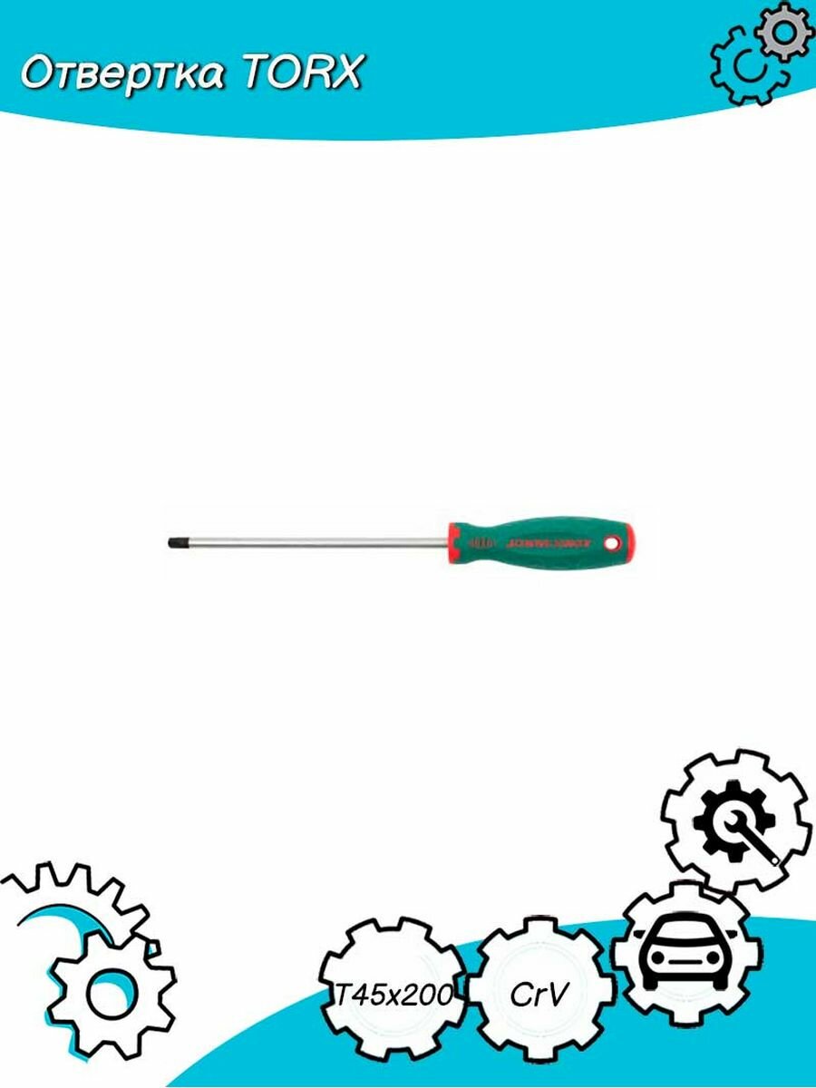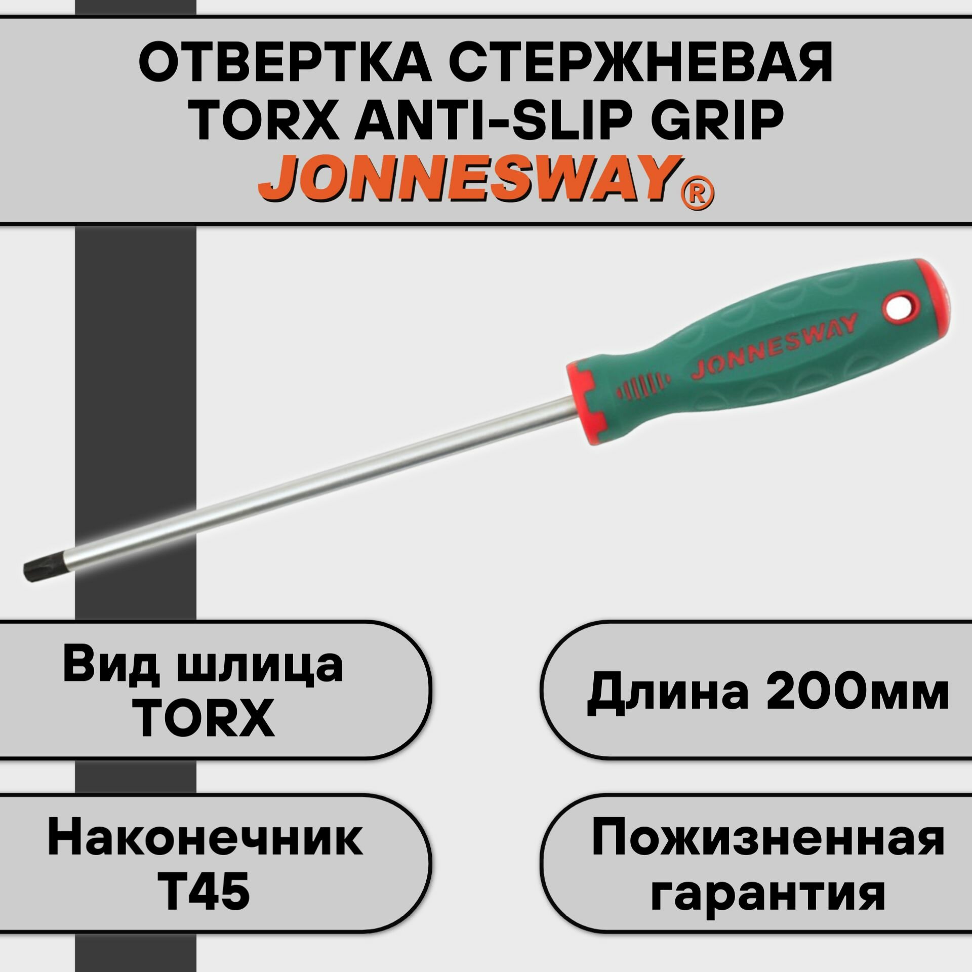 Стержневая отвёртка Jonnesway с наконечником TORX® и противоскользящей рукояткой обладает рядом преимуществ, которые делают её идеальным инструментом для работы с крепежом.Преимущества Намагниченный наконечник позволяет работать в труднодоступных местах и облегчает процесс закручивания и откручивания винтов с внутренним TORX-профилем. Стержень из хромованадиевой стали обеспечивает прочность и долговечность инструмента, а также устойчивость к коррозии. Эргономичная двухкомпонентная рукоятка с нескользящим покрытием гарантирует комфорт при работе и снижает утомляемость руки. Соответствие стандартам качества ГОСТ 17199-88 и DIN5262 обеспечивает надёжность и безопасность использования отвёртки.
