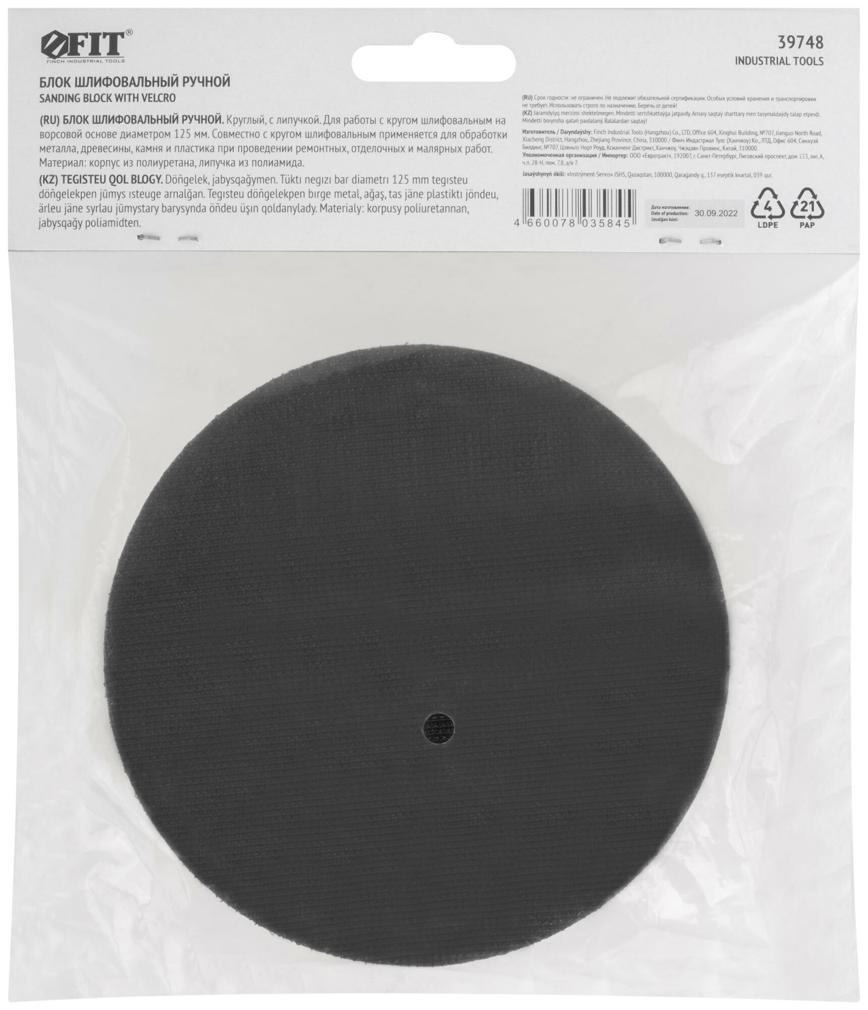 Блок шлифовальный ручной 125 мм под липучку FIT - для работы с кругом шлифовальным на ворсовой основе диаметром 125 мм.