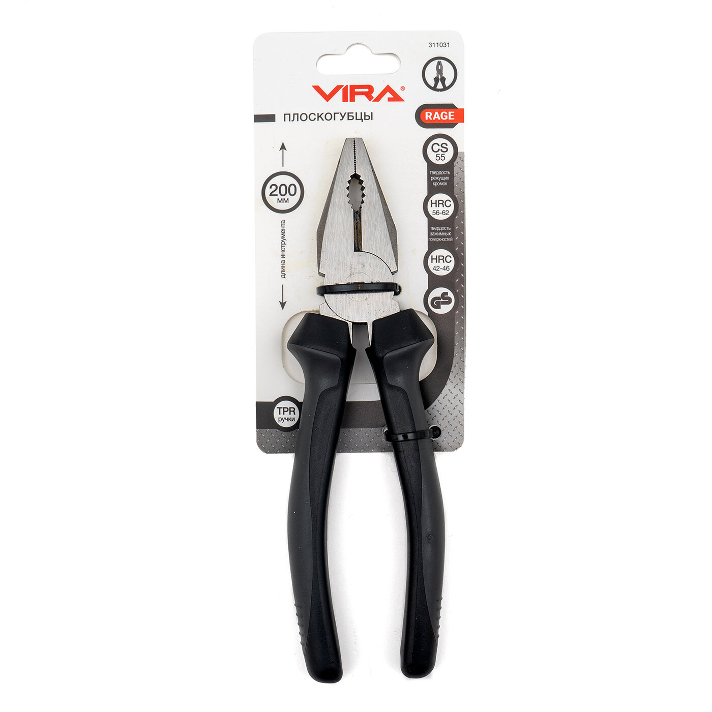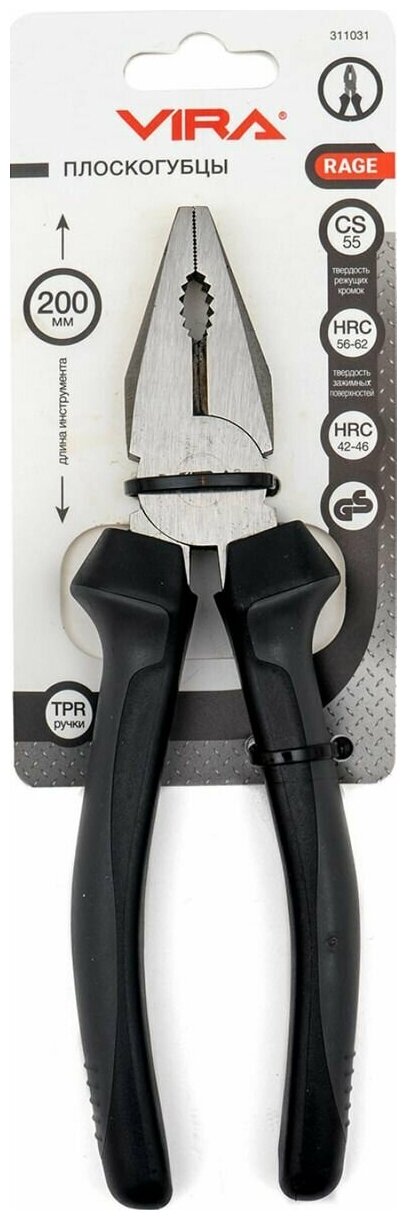| Прочие особенности и свойства | Плоскогубцы 8” Vira 311031 оснащены двухкомпоненнтными рукоятками, которые повторяют форму ладони - это обеспечивает надежный захват инструмента во время проведения работ. Предназначены для быстрого демонтажа различных креплений (гвоздей, гаек и т. д.). Материал губок - CS сталь, обеспечивает присопосблению повышенную износостойкость и, как следствие, продолжительный рабочий ресурс. |