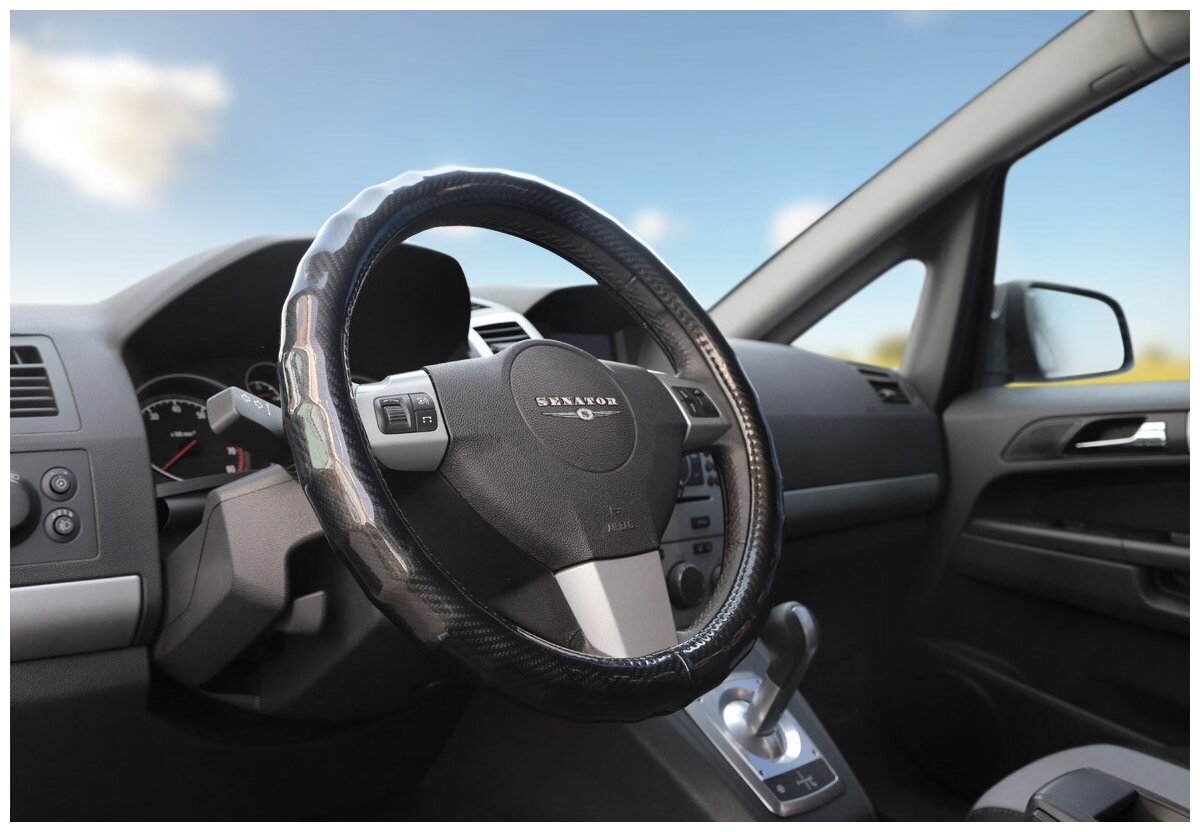 Оплетка на руль Senator "New York" предназначена для рулевых колес с внешним диаметром 37-39 см. Изготовлена из высококачественного винила с текстурой карбона. Эксклюзивная оплетка станет украшением салона автомобиля. Она демонстрирует хороший вкус владельца авто и создает дополнительный комфорт во время вождения. Оплетка Senator "New York" легко устанавливается на рулевое колесо автомобиля и защищает его от потертостей и загрязнений. Диаметр: 38 см.