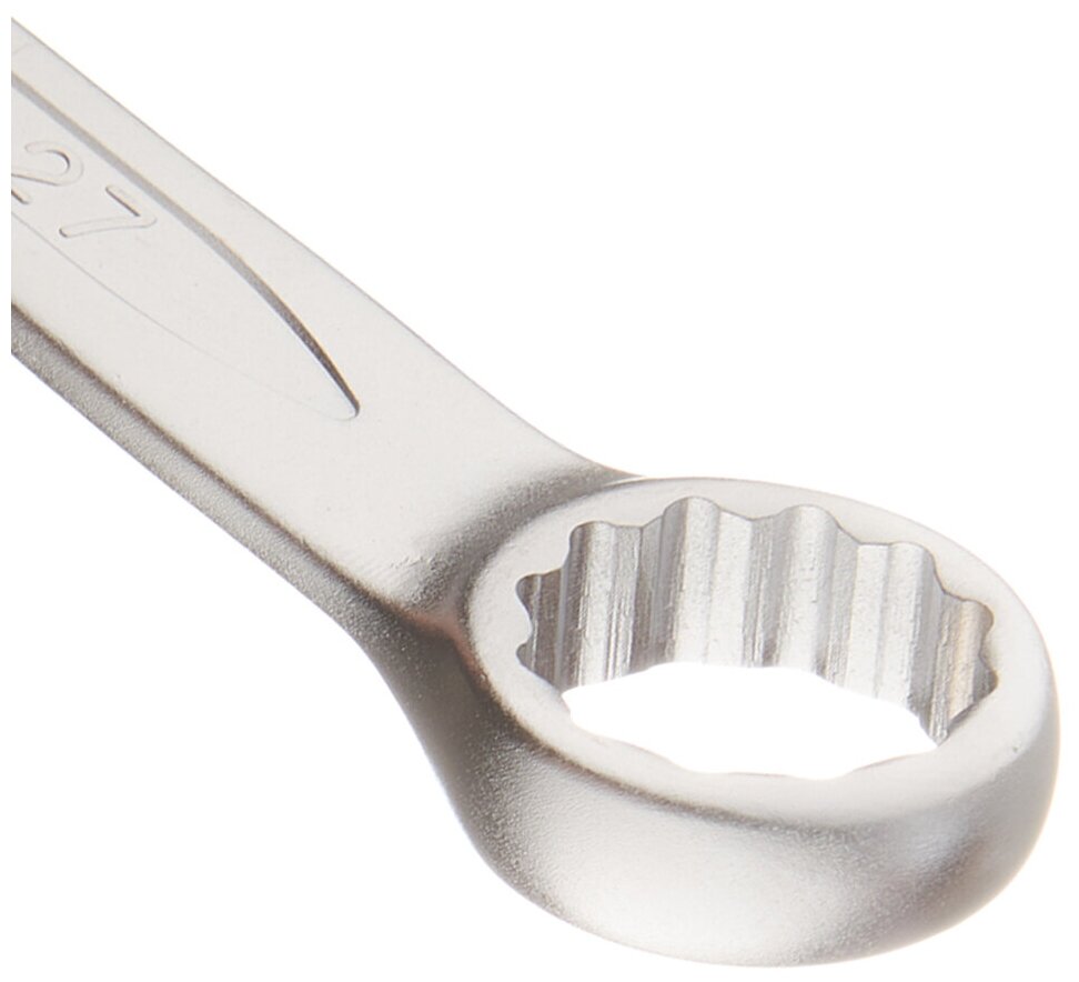 Самый распространенный гаечный ключ 27 мм. представляет собой конструкцию, объединяющую рожковый и накидной профили. Изготовлен в соответствии со стандартом DIN 3110 из хромованадиевой стали, закален, имеет хромоникелевое покрытие, полностью соответствует ГОСТ 2838-80.