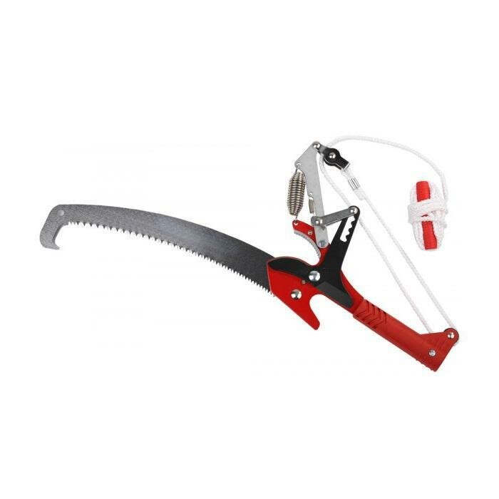 Сучкорез штанговый с храповым механизмом и пилой с режущим крюком предназначен для обрезки веток кустарников или деревьев. Лезвие изготовлено из высококачественной углеродистой стали и остро заточено.