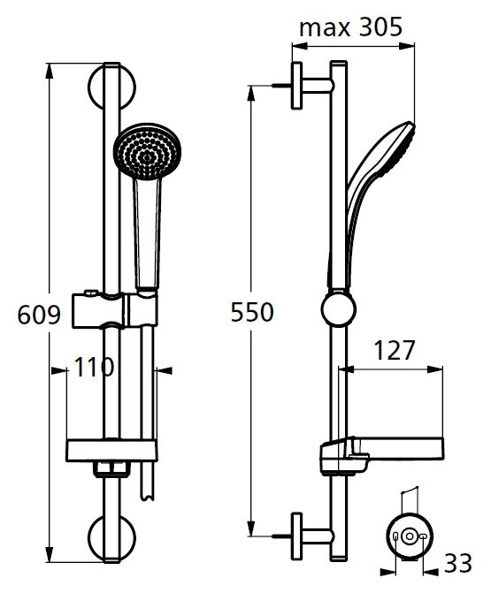 | Оснащение | душевая лейка, мыльница, шланг для душа, настенный держатель |