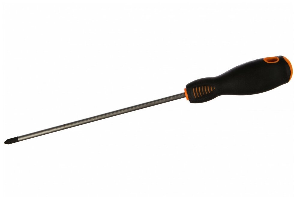 Отвертка крестовая PH NEO. Стержень отвертки изготовлен из чрезвычайно прочной стали марки S2. Рабочая часть подвергнута термообработке, благодаря чему получена требуемая твердость и стойкость к изгибу 56 HRC. Отвертка с намагниченным жалом. Трехгранная форма рукоятки с профилированной опорой для большого пальца уменьшает нагрузку на ладонь во время работы и облегчает быстрое вращение отвертки. Двухкомпонентная рукоятка предотвращает скольжение в ладони, стойкая к воздействию химических веществ, масел и смазок. Качество инструмента подтверждено сертификатом TUV и 25-летней гарантией производителя. Бренд NEO оправдывает ожидания профессионалов.