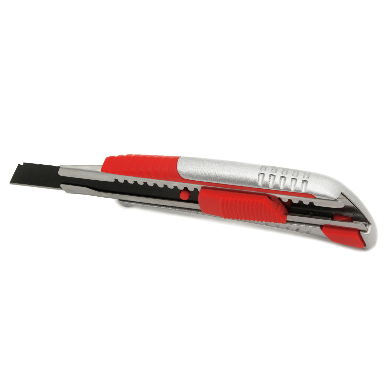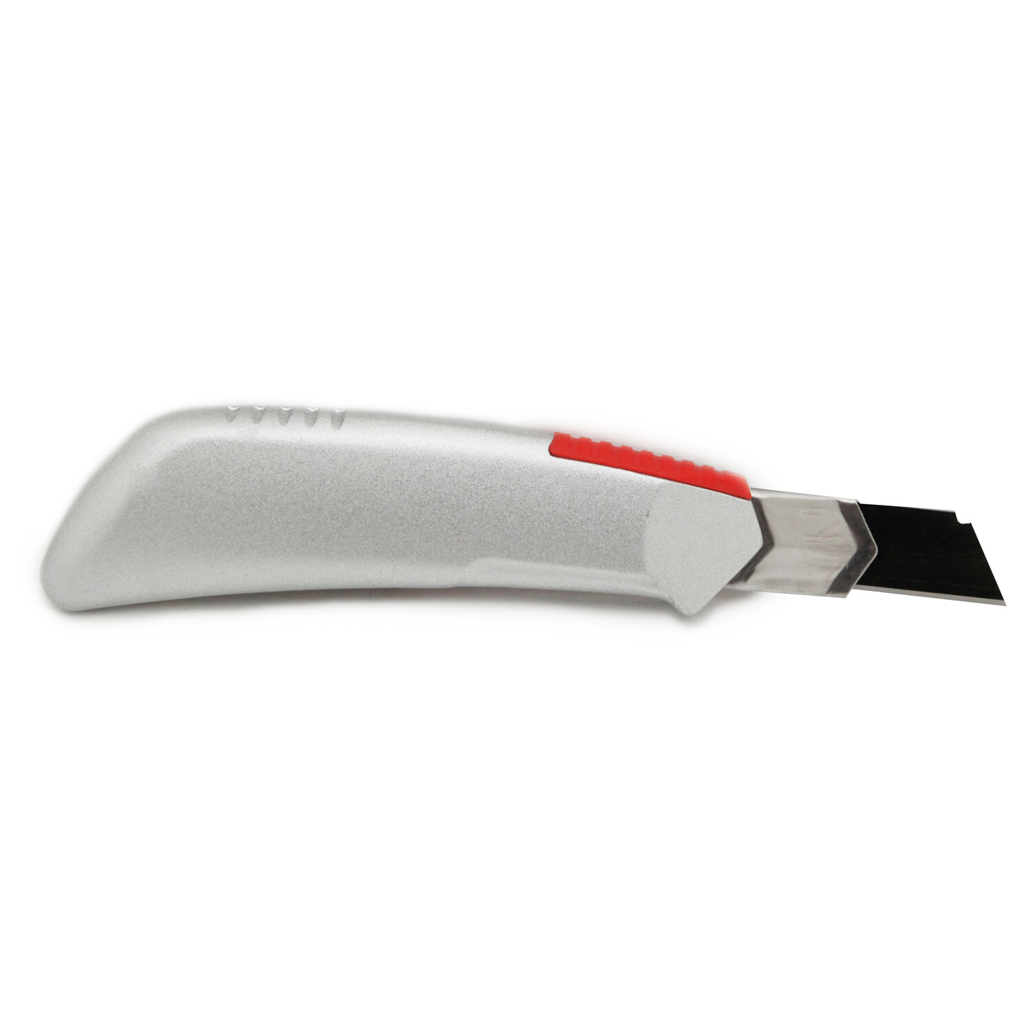 Предназначен для работы с бумагой, плотным картоном, пленкой и т.д. Металлический корпус придает инструменту особую прочность и износостойкость. Эргономичная прорезиненная вставка снижает нагрузку на кистевой сустав при резке. Выдвижное лезвие изготовлено из высококачественной нержавеющей стали. Инструмент оснащен системой фиксации лезвия auto-lock, что позволяет легко регулировать длину и одновременно прочно фиксировать лезвие при работе.