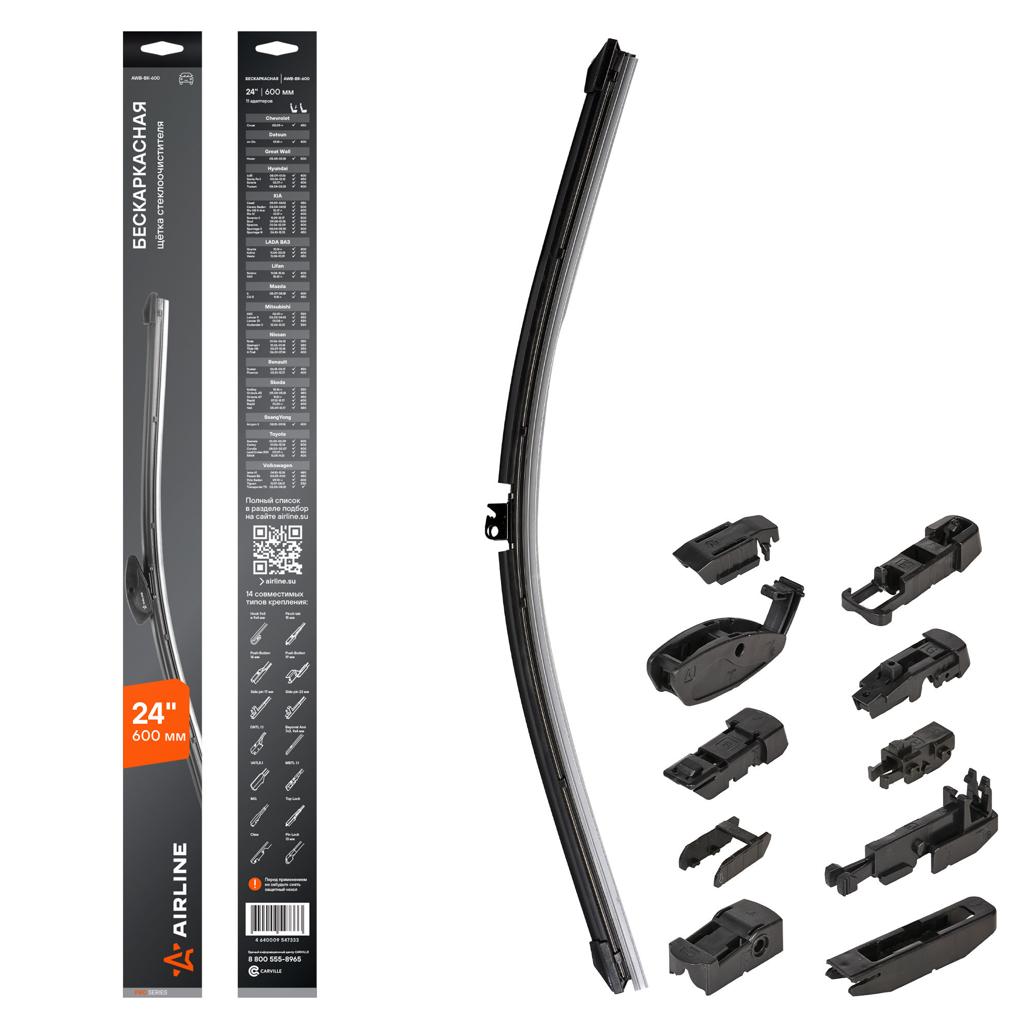 Бескаркасная щетка стеклоочистителя Airline Awb-bk-600 (размер: 24 (600 мм))