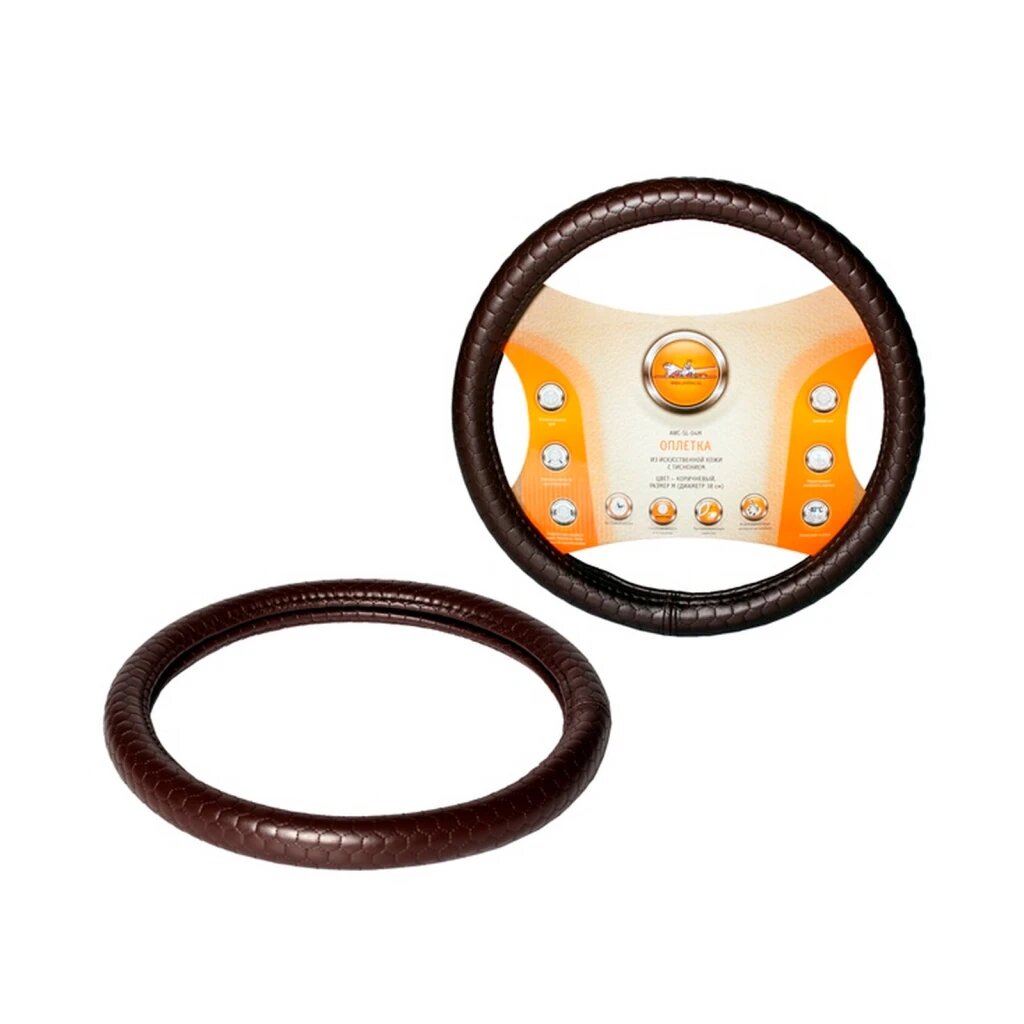 Оплетка поможет украсить салон вашего автомобиля и сделать его еще более стильным и современным. Оплетка также обладает массой полезных свойств: защищает руль от грязи, пыли и механических повреждений. Состоит оплетка из искусственной кожи коричневого цвета, с тиснением в виде пчелиных сот. Размер изделия относится к категории M и равен 38 см.