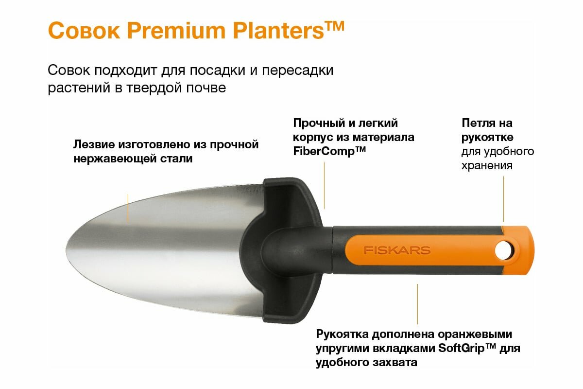 Эргономичная конструкция инструмента FISKARS Premium 137200 позволяет комфортно проводить посадку, культивацию, прополку и посев растений. Закругленная форма углов разработана специально для сведения к минимуму повреждений корней и почвы.
