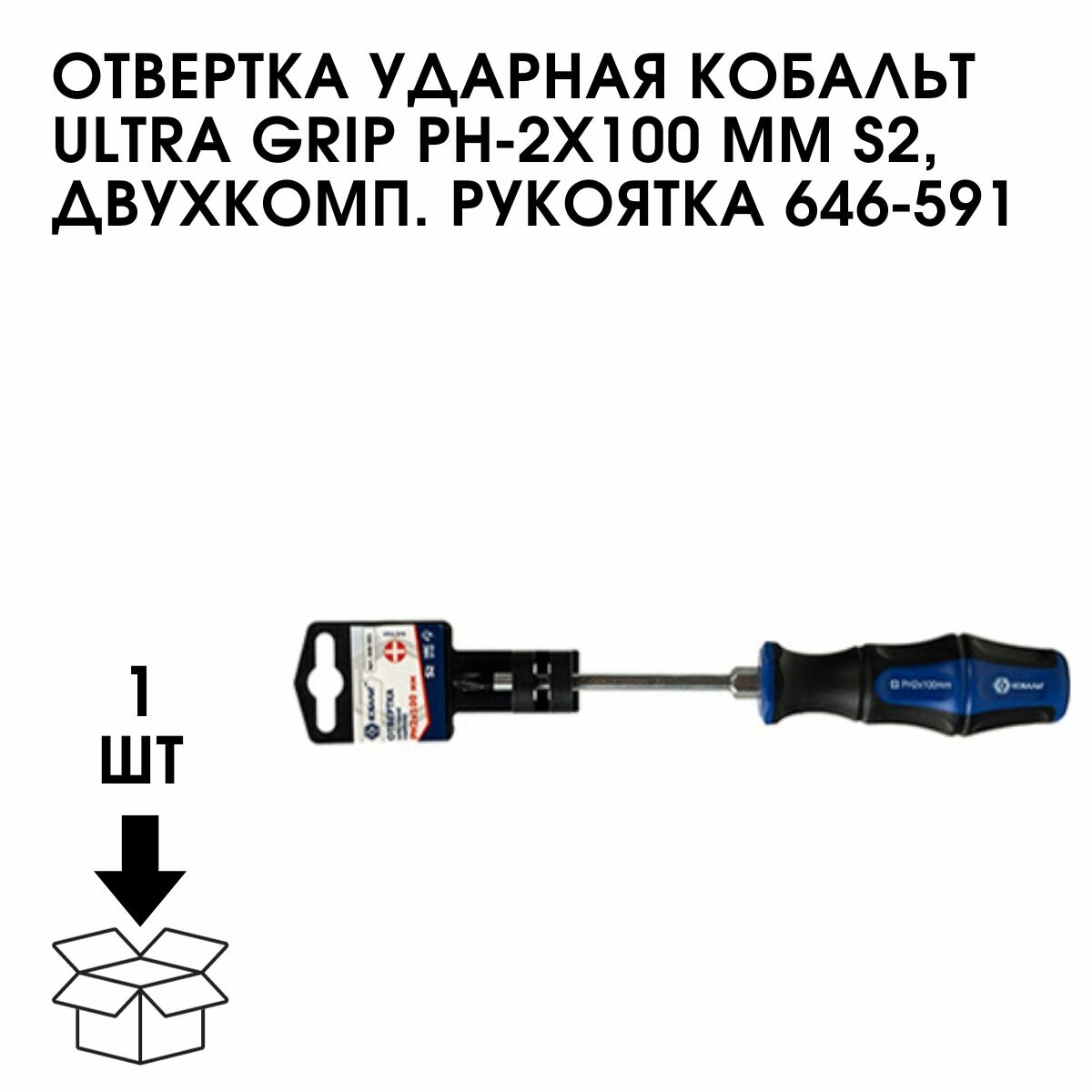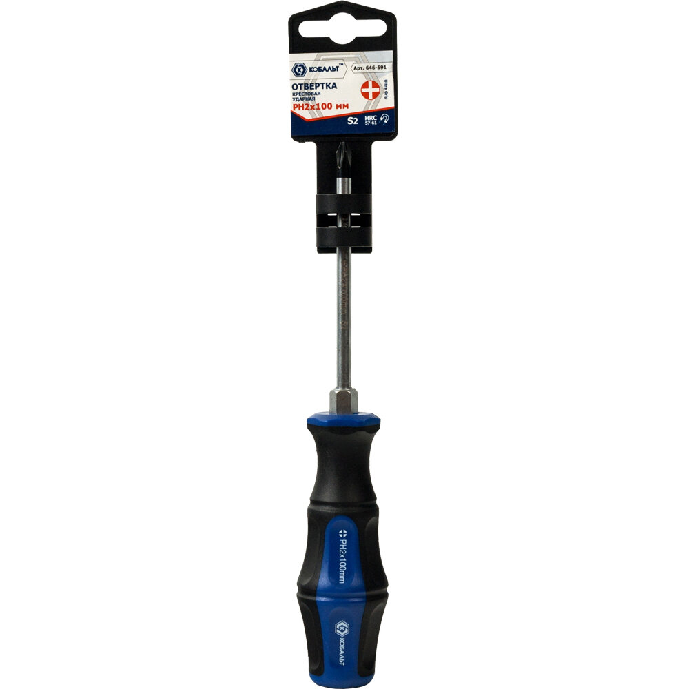 Отвертка ударная Ultra Grip PH-2x100 мм S2 КОБАЛЬТ - ручной инструмент для работы с резьбовыми соединениями крестового профиля. Материал рукоятки обеспечивает удобство в обращение с изделием. В стальной стержень встроен наконечник с магнитом, с помощью которого производится фиксацию крепежа.