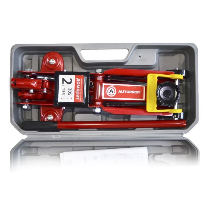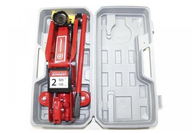 Автомобильный подкатной домкрат с простой и надежной конструкцией. Работает на любой твердой и ровной поверхности. Домкрат поднимает до 2 тонн веса на максимальную высоту 30,5 см. Поставляется в удобном для хранении и переноске пластиковом кейсе.