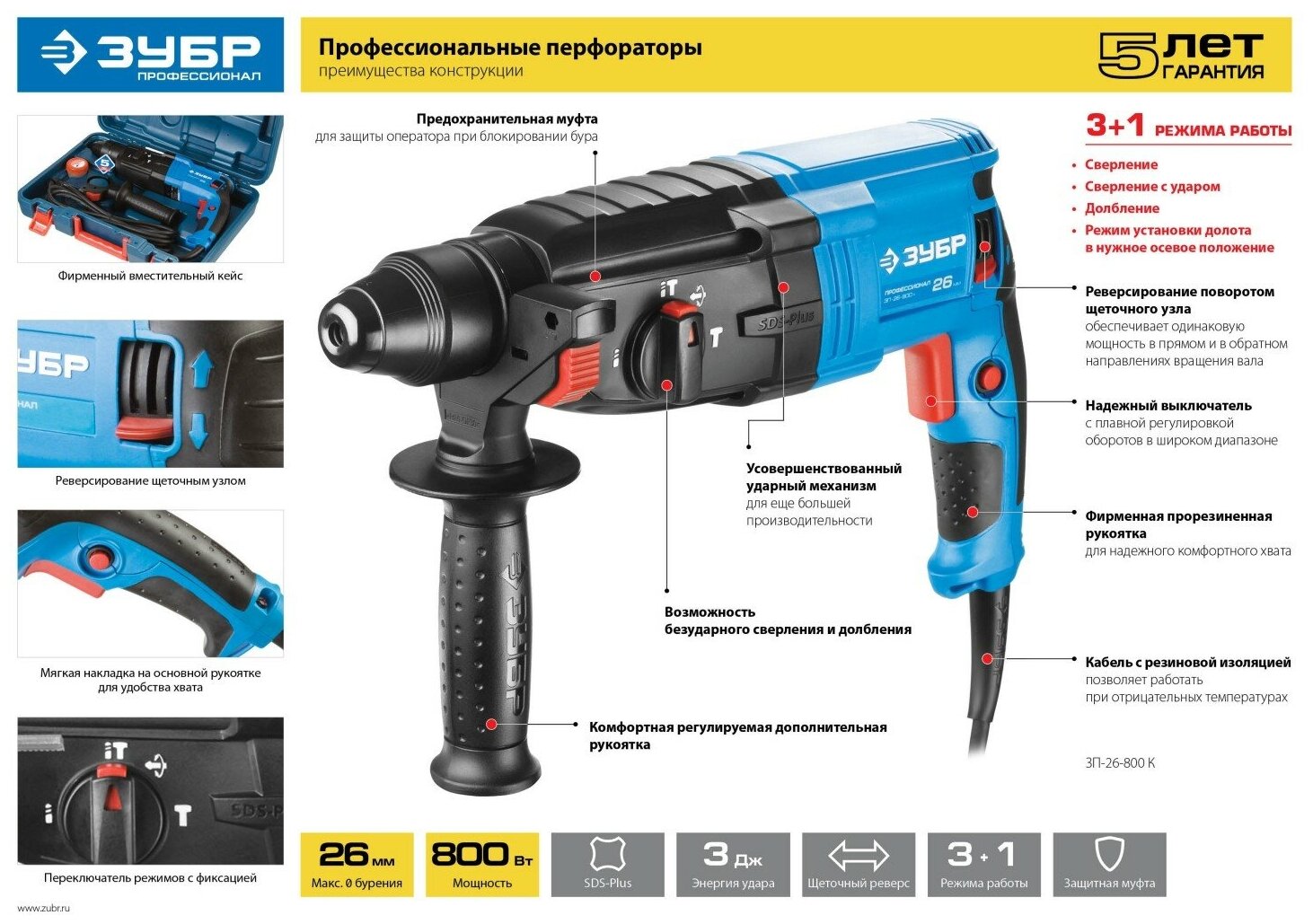 - Обзор перфоратора Зубр ЗП-26-800 К