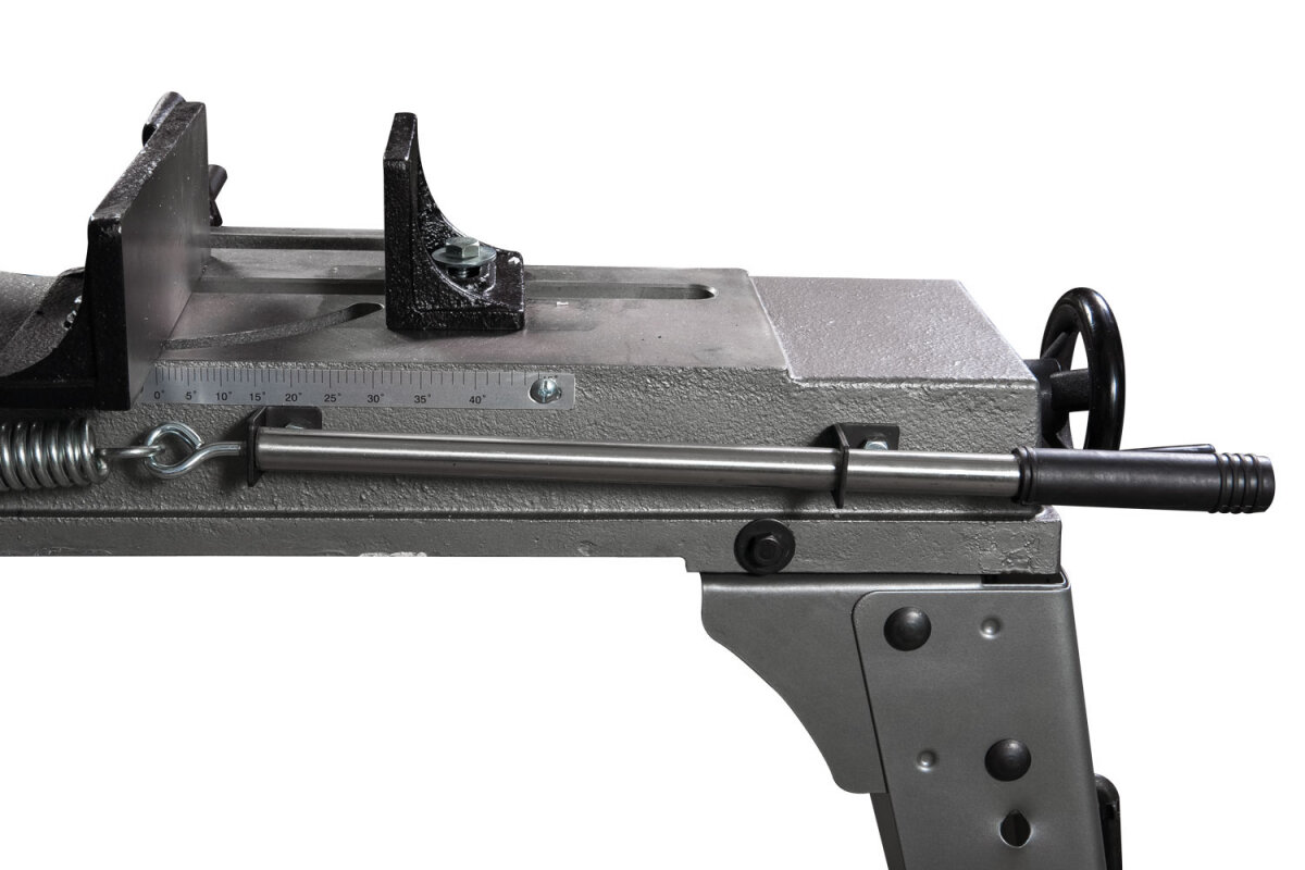 Станок рассчитан на мелкосерийное производство, пригоден для индивидуальной работы. Модель рассчитана на обработку металлических заготовок диаметром до 125 мм, оснащена тяжелой рамой, которая в процессе работы опускается в ручном режиме непосредственно оператором.