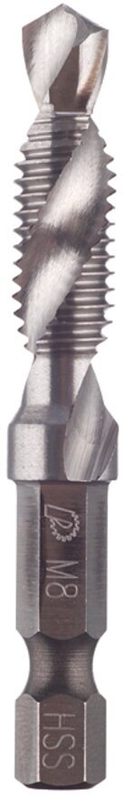 Сверло - метчик комбинированное предназначено для сверления отверстия и нарезания резьбы при помощи дрели. Для обработки листовых материалов и профилей из легированных и не легированных сталей с пределом прочности на растяжение до 900 Н/мм2 и цветных металлов. Изготовлено из быстрорежущей стали Р6М5, шлифованное, хвостовик 1/4". Сверление, нарезание резьбы и зенковка производится за один рабочий проход, очистка резьбы - на обратном ходу. Резьба метрическая DIN ISO 13, правосторонняя. Допуск ISO 2 / 6Н. Боковая поверхность - затыловочная шлифовка.