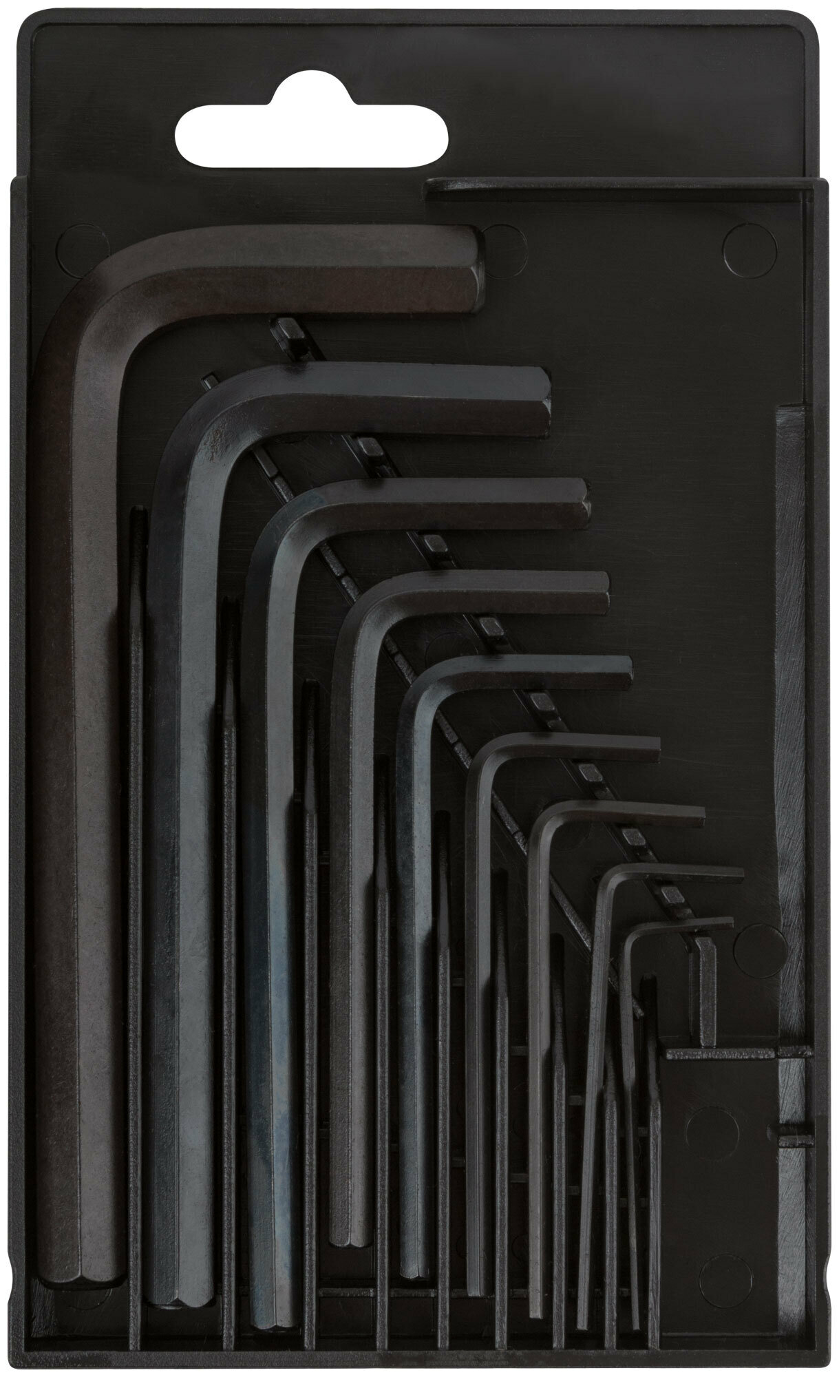 Набор шестигранных ключей Fit , HEX, короткие, CrV, 9 шт. (1,5-10 мм) в пластиковом футляре представляет собой комплект из 9 ключей с размерами 1.5, 2, 2.5, 3, 4, 5, 6, 8 и 10 мм, предназначенный для работы с крепежом с внутренним шестигранникомПреимущества Изготовлены из хром-ванадиевой стали и устойчивы к интенсивным нагрузкам Закалка ключей обеспечивает высокую твердость и прочность Увеличенная длина ключей позволяет передавать большее усилие во время работы 9 размеров в наборе способствуют выполнению широкого спектра задач Черненое покрытие ключей предотвращает коррозию Пластиковый футляр обеспечивает организованное хранение и транспортировку