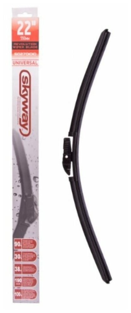 Бескаркасные щётки стеклоочистителя SKYWAY обеспечивают равномерное очищение всей поверхности стекла. Благодаря технологическому усовершенствованию щетки SKYWAY способны удалять даже самые мелкие частицы воды. Натуральный каучук, из которого произведены щетки, и графитовое напыление позволяют значительно снизить уровень шума, а также увеличивают срок службы. Более того, щетка скользит по поверхности с минимальным усилием, а резина остается эластичной в жару и мороз. Щетка плотно прилегает к стеклу даже на большой скорости, надежно защищая его от загрязнений.