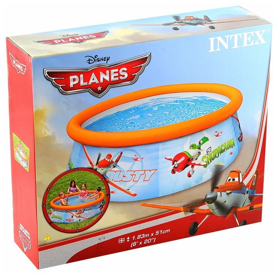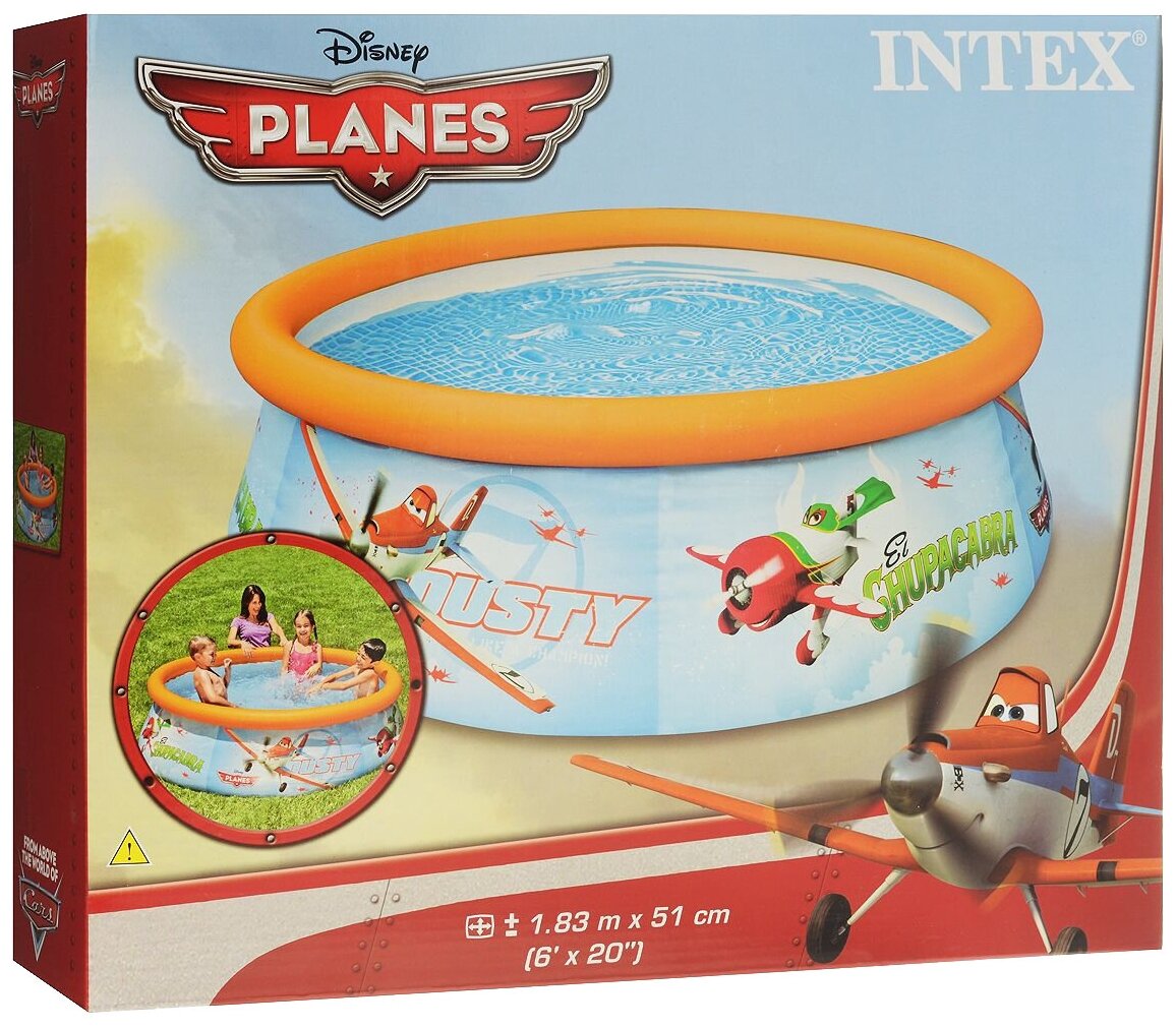 Бассейн детский Intex Easy Set Самолеты () - привлекательный и красочный детский бассейн круглой формы, предназначен для использования на открытом воздухе во время тёплой летней погоды. Диаметр бассейна составляет 183 см, высота - 51 см. Объём бассейна - 886 литров. Бассейн выполнен из прочного ПВХ. Бассейн позволит ребёнку провести время активно и с пользой для здоровья.