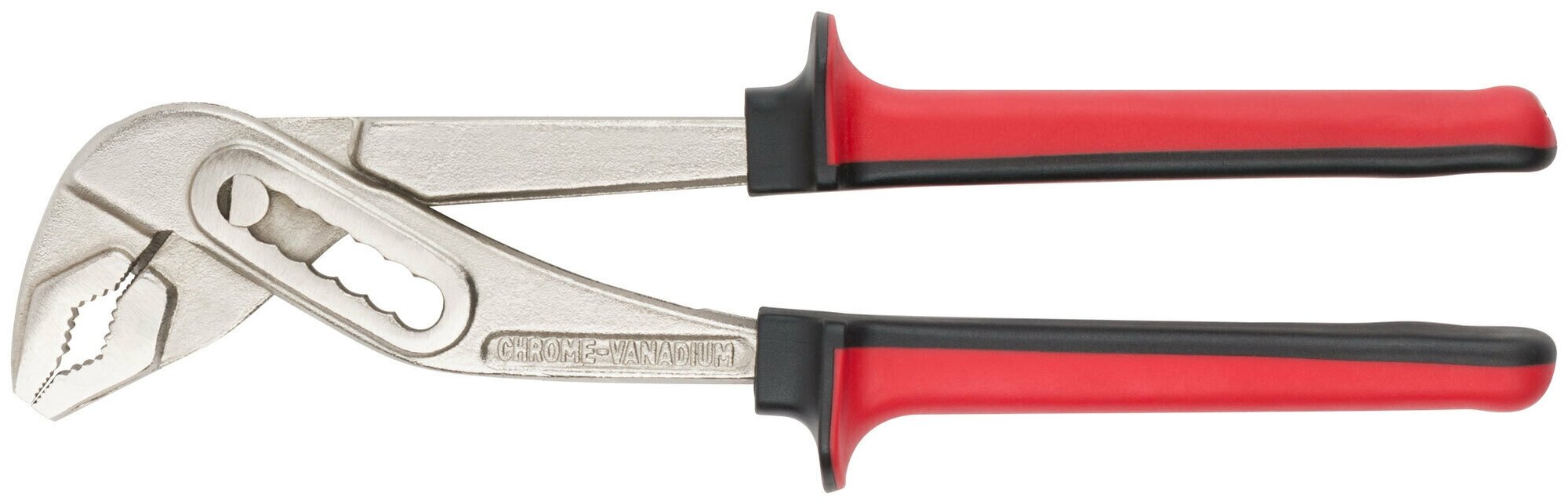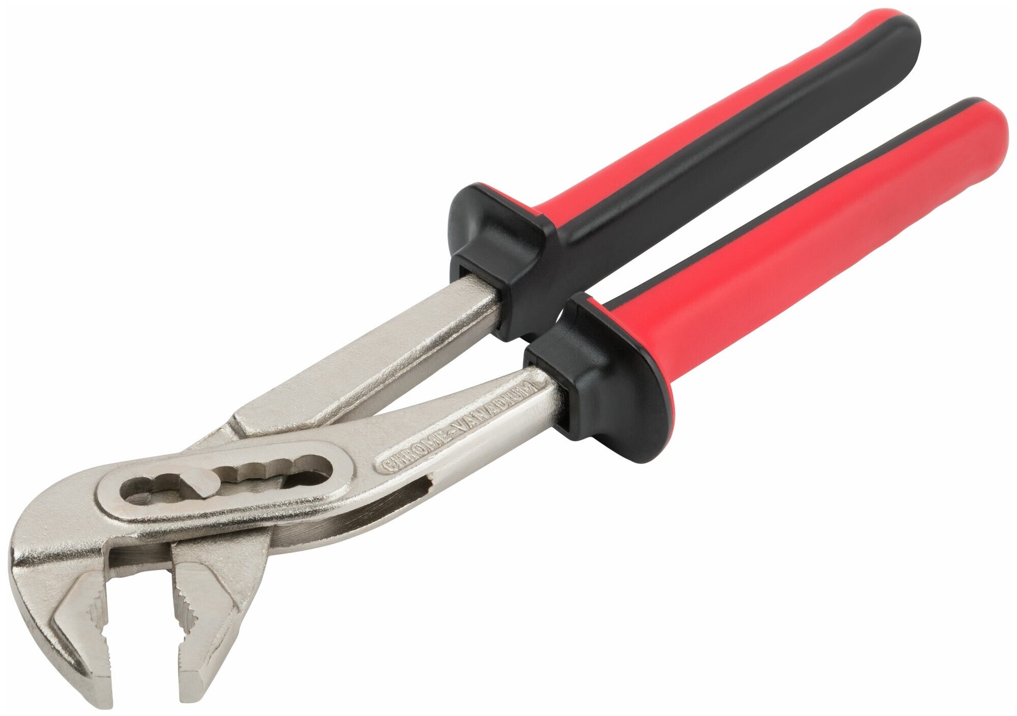 Клещи переставные "Люкс" CrV, тип D4, 250 мм "Люкс". Захват трубный, усиленный. Материал: хром-ванадиевая сталь, никелированное антикоррозийное покрытие, прорезиненные ручки. Упаковка: пластиковый подвес.