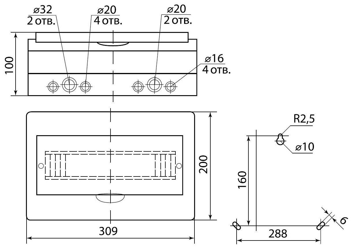 Для удобства монтажа на боковых и задней стенках корпуса выштампованы легкоудаляемые вводы для кабеля.