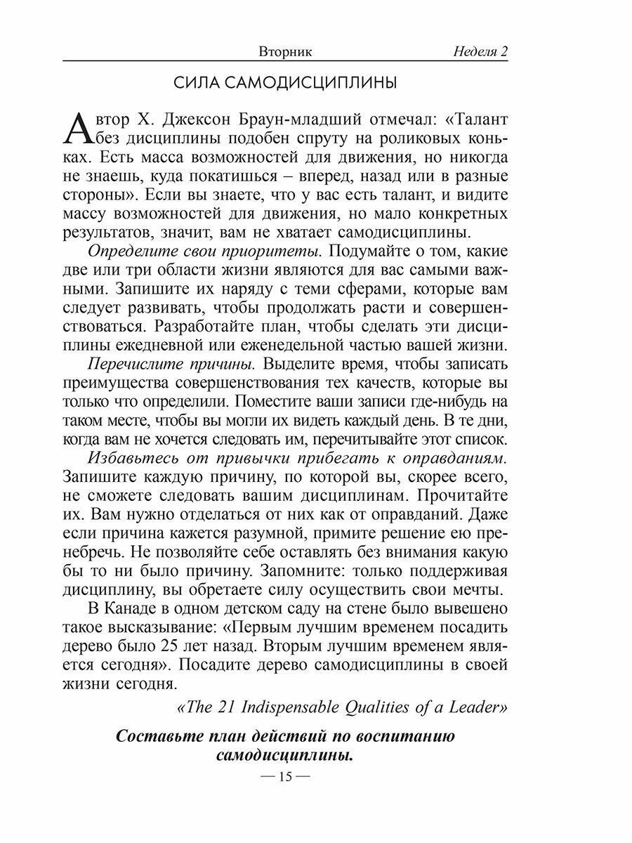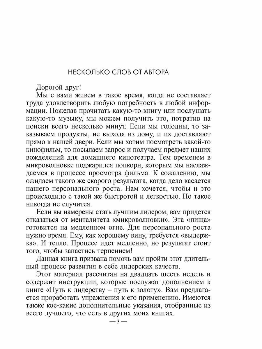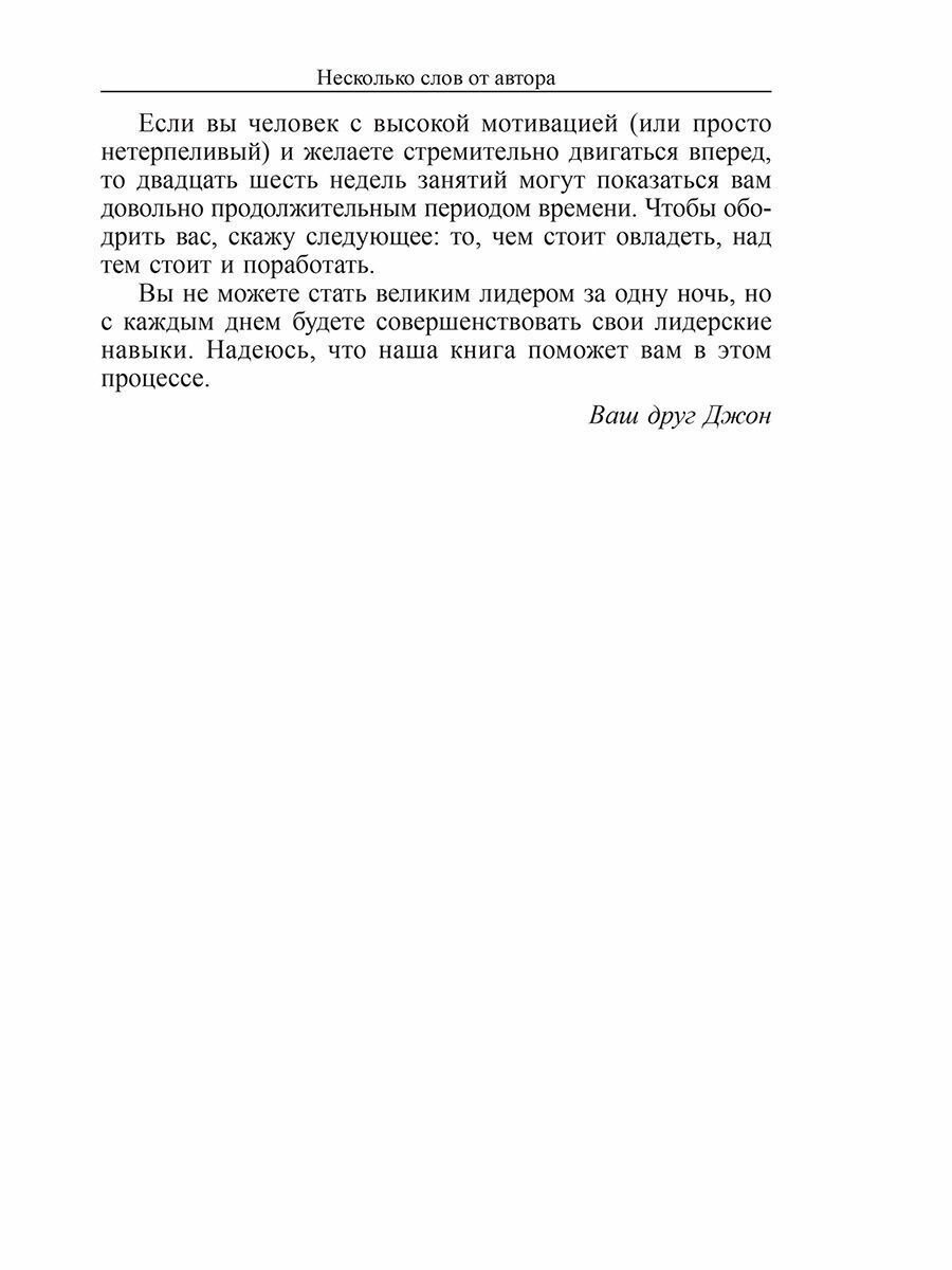 Пройдите курс обучения под руководством Джона Максвелла. Каждая из 26 глав этой книги представляет собой персональный урок один на один с наставником, которого сайт Leadershipgurus назвал величайшим в мире гуру в области лидерства, и содержит мудрые мысли, новые идеи и практические упражнения для всех, кто стремится стать настоящим лидером. В ней вы найдете множество историй о собственных неудачах и успехах автора на лидерской стезе и тех самородков мудрости, которые ему посчастливилось добыть за 40 лет своей карьеры лидера.