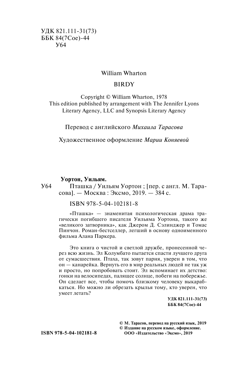 Книга: Пташка (Уильям Уортон); Эксмо, 2019