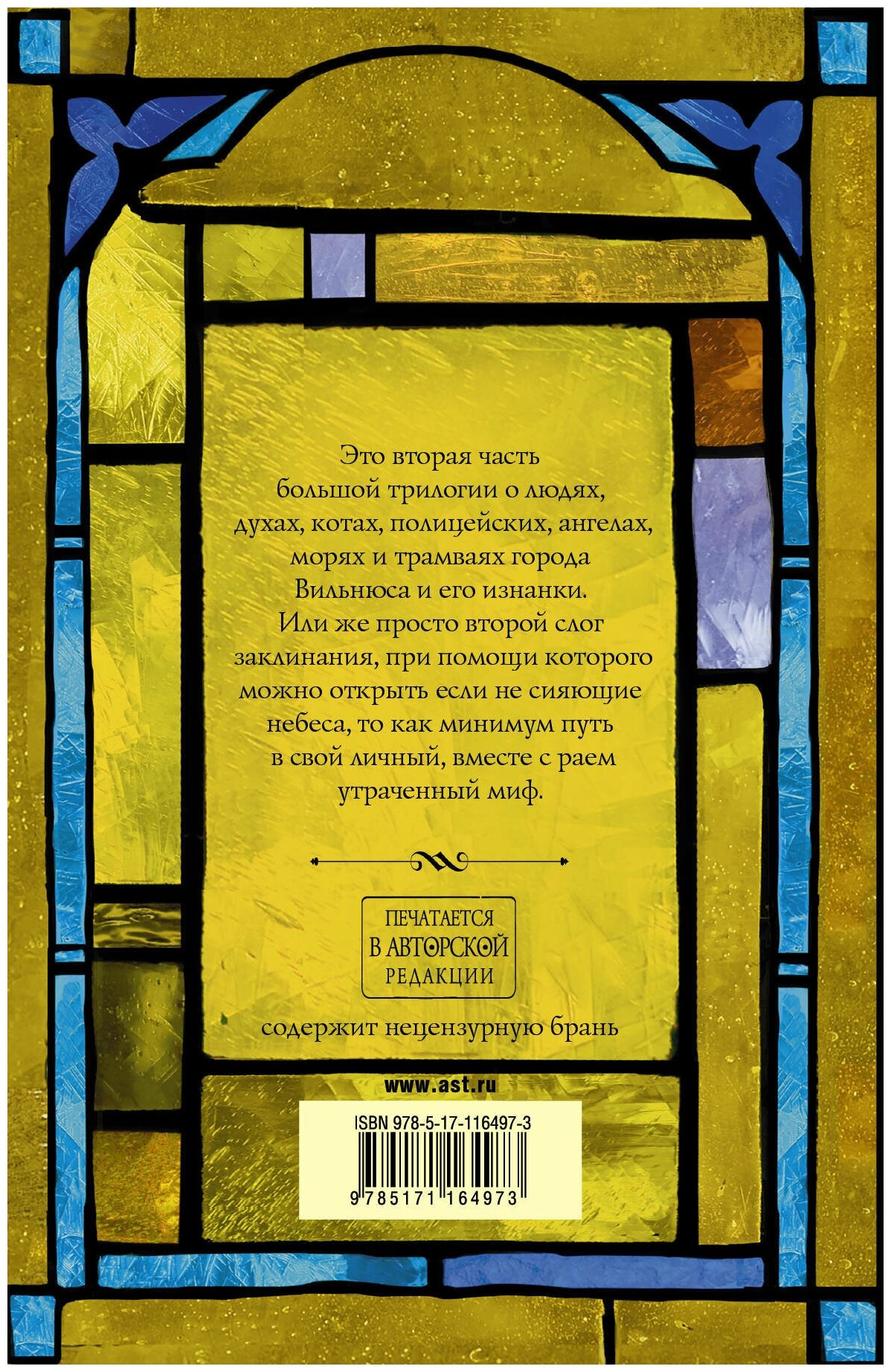 Это вторая часть большой трилогии о людях, духах, котах, полицейских, ангелах, морях и трамваях города Вильнюса и его изнанки. Или же просто второй слог заклинания, при помощи которого можно открыть если не сияющие небеса, то как минимум путь в свой личный, вместе с раем утраченный миф.