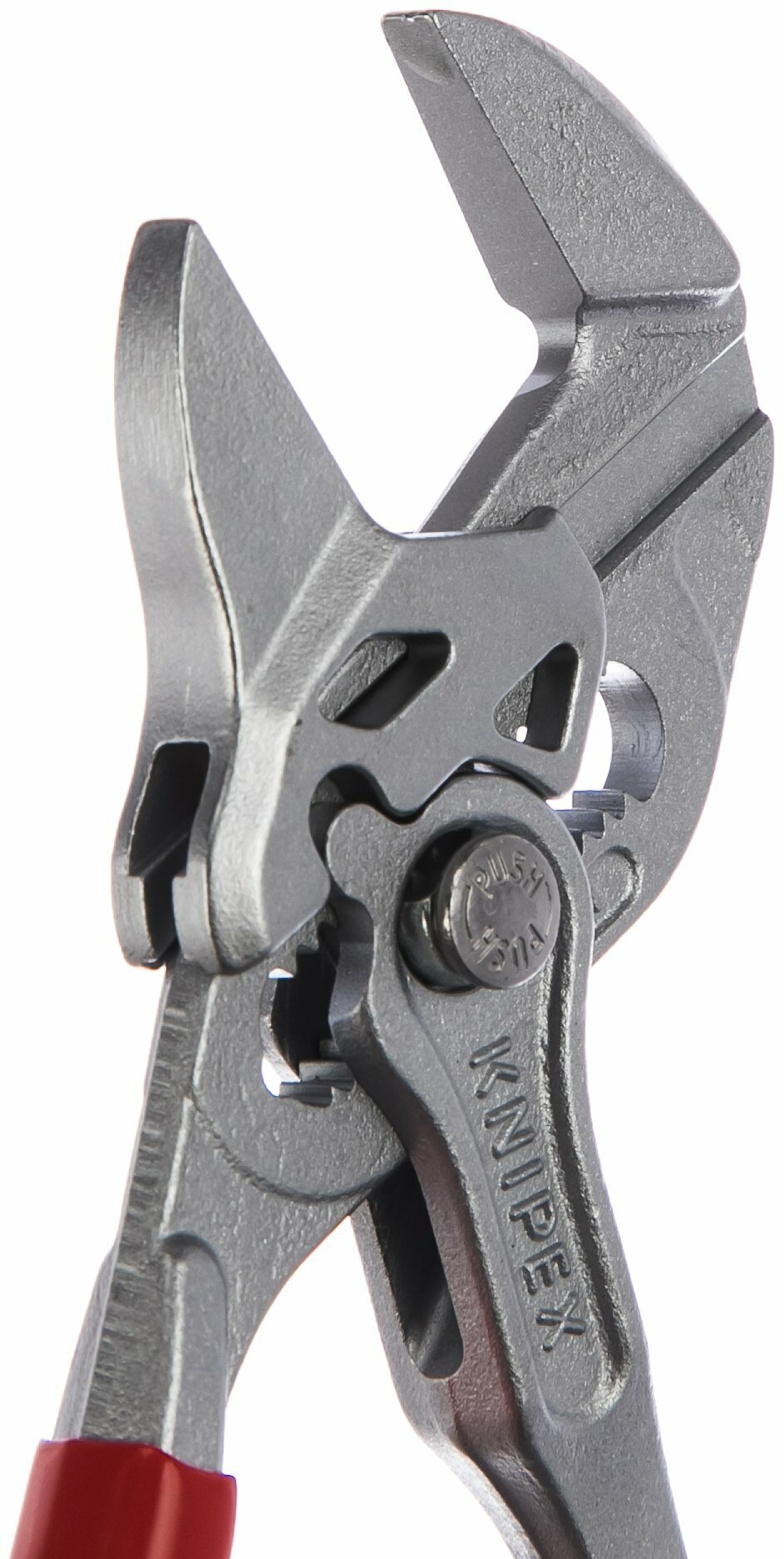 Переставной ключ KNIPEX имеет 14 позиций для захвата деталей разных размеров и заменяет целый набор ключей. Используется для различного рода монтажных работ. Губки с гладкой полированной поверхностью не повреждают деталь. Благодаря наличию специального механизма переустановка нижней губки в нужное положение производится нажатием одной кнопки.