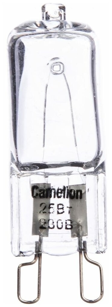 Описание галогенной лампы Camelion G9 25W 220V прозрачнаяИспользуется в основном в прожекторах для освещения жилых помещений, офисов, квартир и общественных объектов. Основные преимущества галогенных ламп - это низкое энергопотребление, высокая надежность, компактность и длительный срок службы.